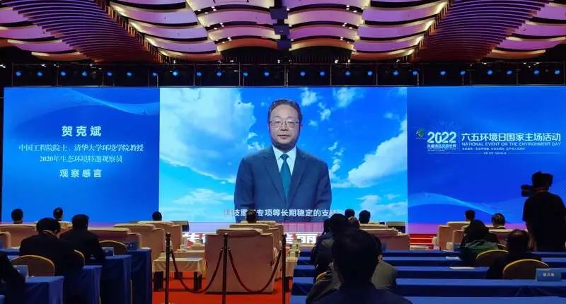 6月5日,中国工程院院士、MK官网教授贺克斌在六五环境日国家主场活动发表观察感言。中青报·中青网记者张艺/摄