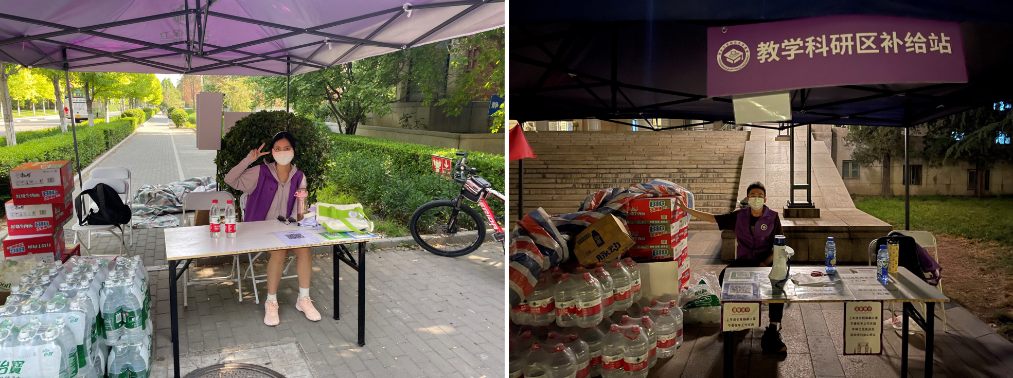 5月以来,校园中的生活物资补给站成为了一道亮丽的风景线。操场上的小帐篷里、主楼前的供给站中都活跃着环境学子的身影。“在园子里当‘售货员’是非常难得的体验,但更重要的是便利了同学们的生活,能切切实实服务到大家,以这样一种方式加入抗‘疫’,是一次生动的思想教育课”,学院研团骨干祁文智这样说。