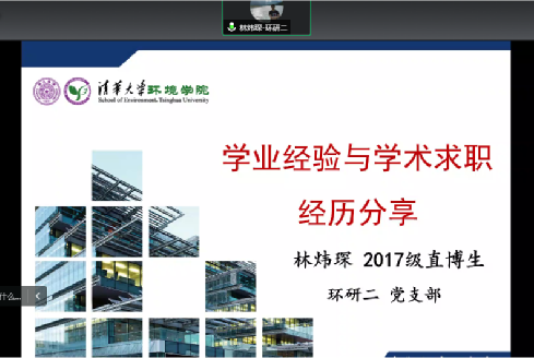 很荣幸能够与多个支部的老师和优秀的同学一同参与组织生活,身处其中如沐春风,受益匪浅。两位师兄为我们系统地介绍了自身在高校和重点企业的求职经历,给我们提供了一个范例,使我们能够更加明确自身的科研与职业生涯规划。关晓壮老师职场礼仪分享也提醒我们时刻注意自身言行举止,在与人方便的同时也方便自己。刘书明老师则从环境学院的历史开始,重申了清华环境人的使命和对国家和人民应负的责任,让我们加坚定自己的选择,力争在科研与实践中作出更大的贡献。