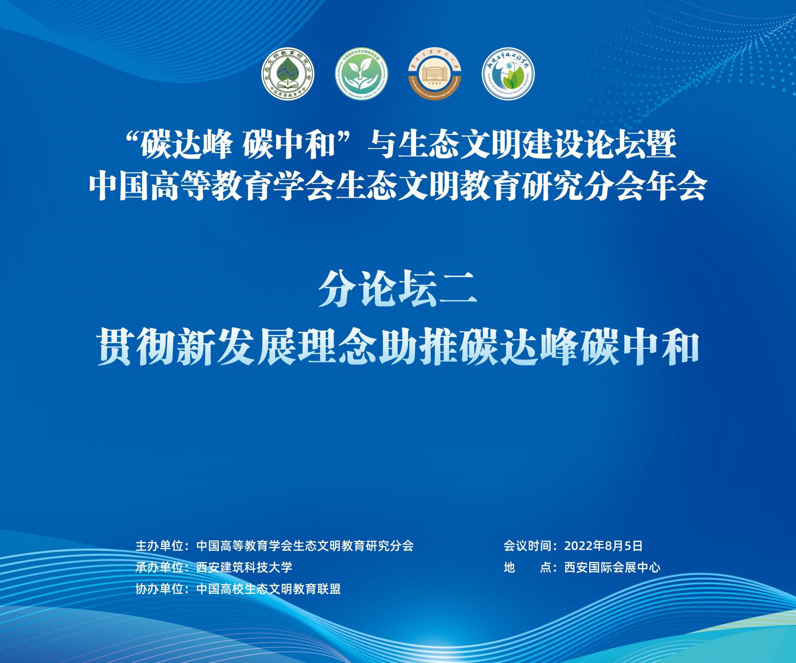 MK官网2022年8月9日电(通讯员 胡雯 姜爱娜)8月5日下午,“贯彻新发展理念助推碳达峰碳中和”论坛在西安国际会展中心成功举办。该论坛是“碳达峰 碳中和”与生态文明建设论坛暨中国高等教育学会生态文明教育研究分会年会的分论坛之一,由中国高等教育学会生态文明教育研究分会主办,西安建筑科技大学承办,中国高校生态文明教育联盟协办。该论坛以线上线下结合的方式召开,来自近100个单位的150位代表现场参会,超过130万人次通过央视频在线上观看直播。