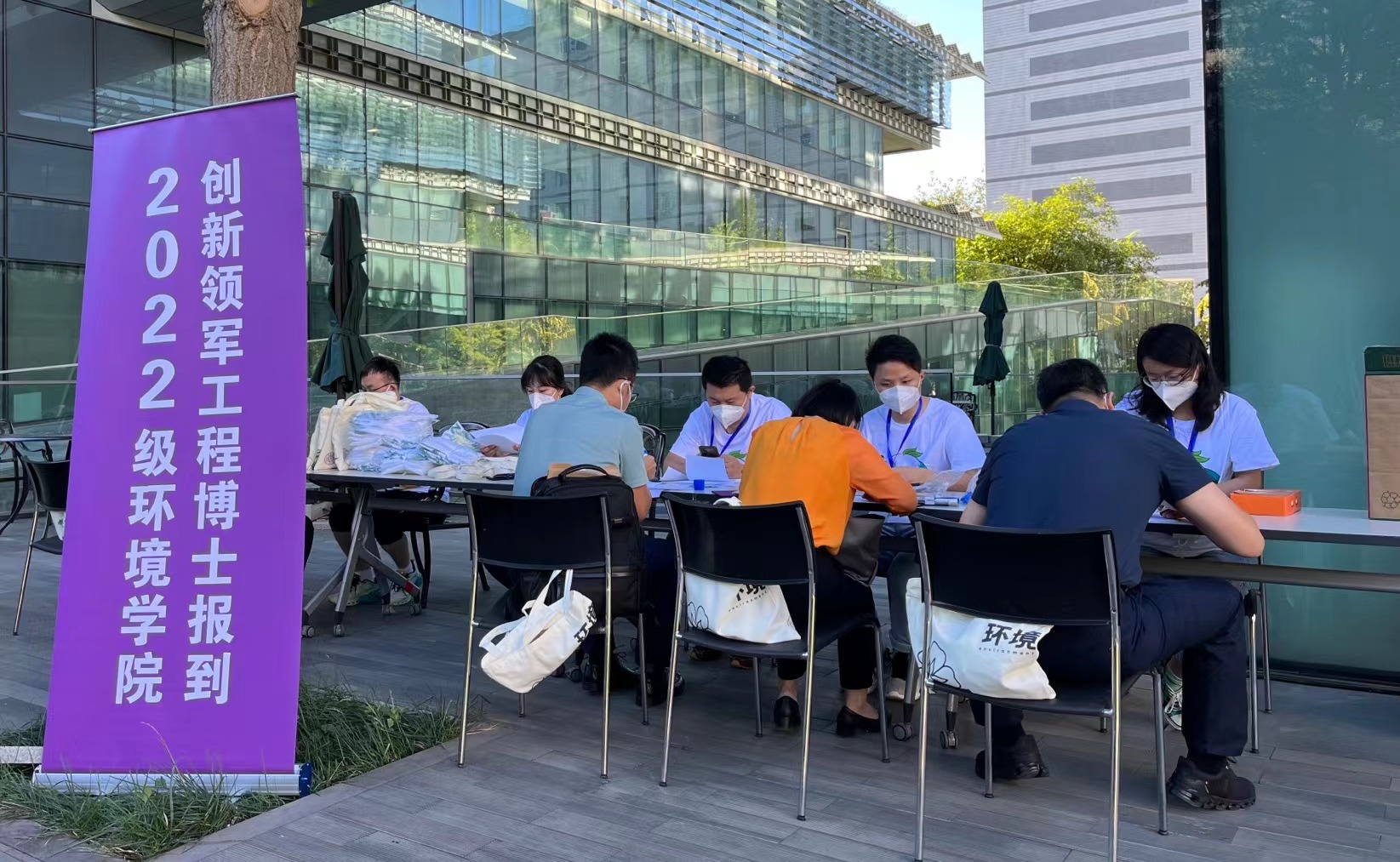 早上,迎着朝阳,新生入学迎新工作拉开序幕。迎新工作点的各位志愿者热情饱满、各尽其责,确保每位工程博士生都安心、顺心、舒心地完成报到。
