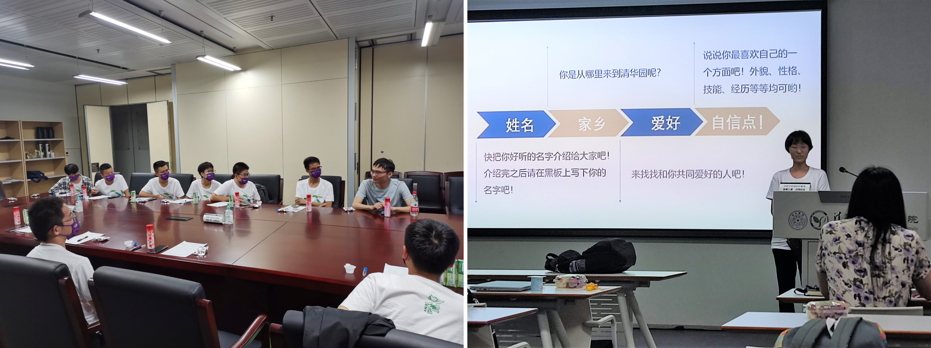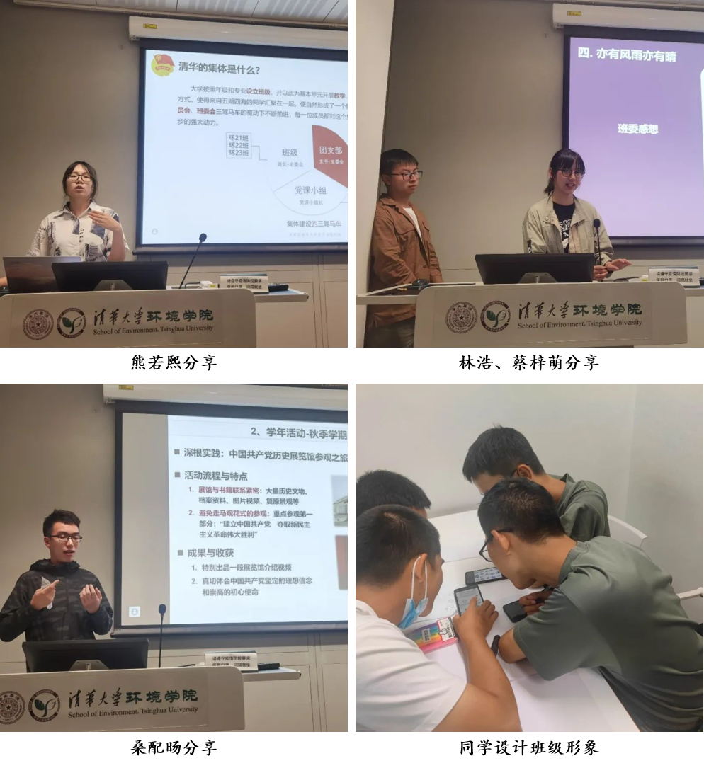 9月6日晚上,第三次新生团队训练营在中意清华环境节能楼举办。环境学院团委副书记熊若熙(分管组织组),优秀团支部书记代表林浩、蔡梓萌和优秀党课学习小组组长代表桑配旸向新生介绍了清华大学的班团建设传统,并分享了自己作为“三驾马车”的工作经验和感受。之后,同学们分班为自己的班级设计了班徽、标语等班级形象。