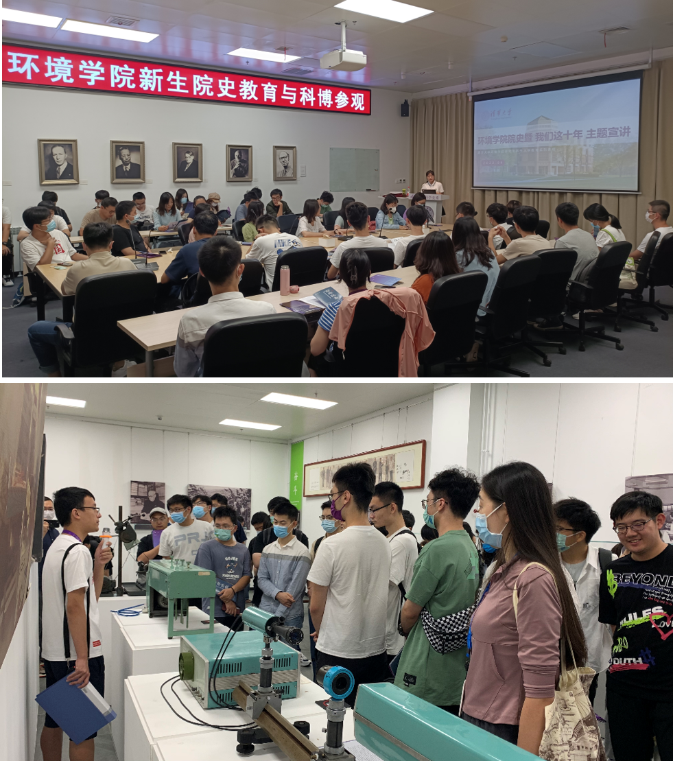 9月10日下午,环境学院本科生新生参加了学院迎新专题活动。博士生讲师团讲师、环境学院2021级博士生苑心以“我们这十年”为主题,带领新生回顾了从1928年到2011清华大学环境学科的发展历程,并重点讲述了自党的十八大以来,随着国家对生态文明建设的高度重视,清华环境学科不断发展壮大,在科学研究、学生培养等方面取得的重要成就。博士生讲师团金牌讲师、环境学院2020级博士生刘迪波带领新生参观了“百年器象——清华大学科学仪器历史展”、清华大学“十三五”科技创新成就展和达·芬奇飞行与工程机械展。