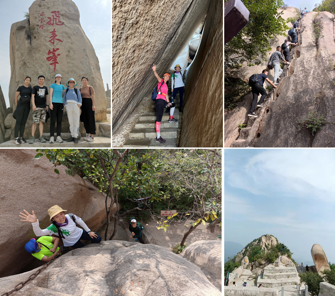 活动当天,秋高气爽、气温适宜,大家乘车来到北京凤凰岭自然风景区。在秋日暖阳的沐浴下,大家沿着公园登山道一路向上攀登,攀岩天梯,穿过宫保石寨,登上了海拔748米的飞来峰。置身山林,空气清新;俯瞰四周,有悬崖峭壁;极目远眺,一览广袤平原。在大自然的环抱中,大家感到身心愉悦。
