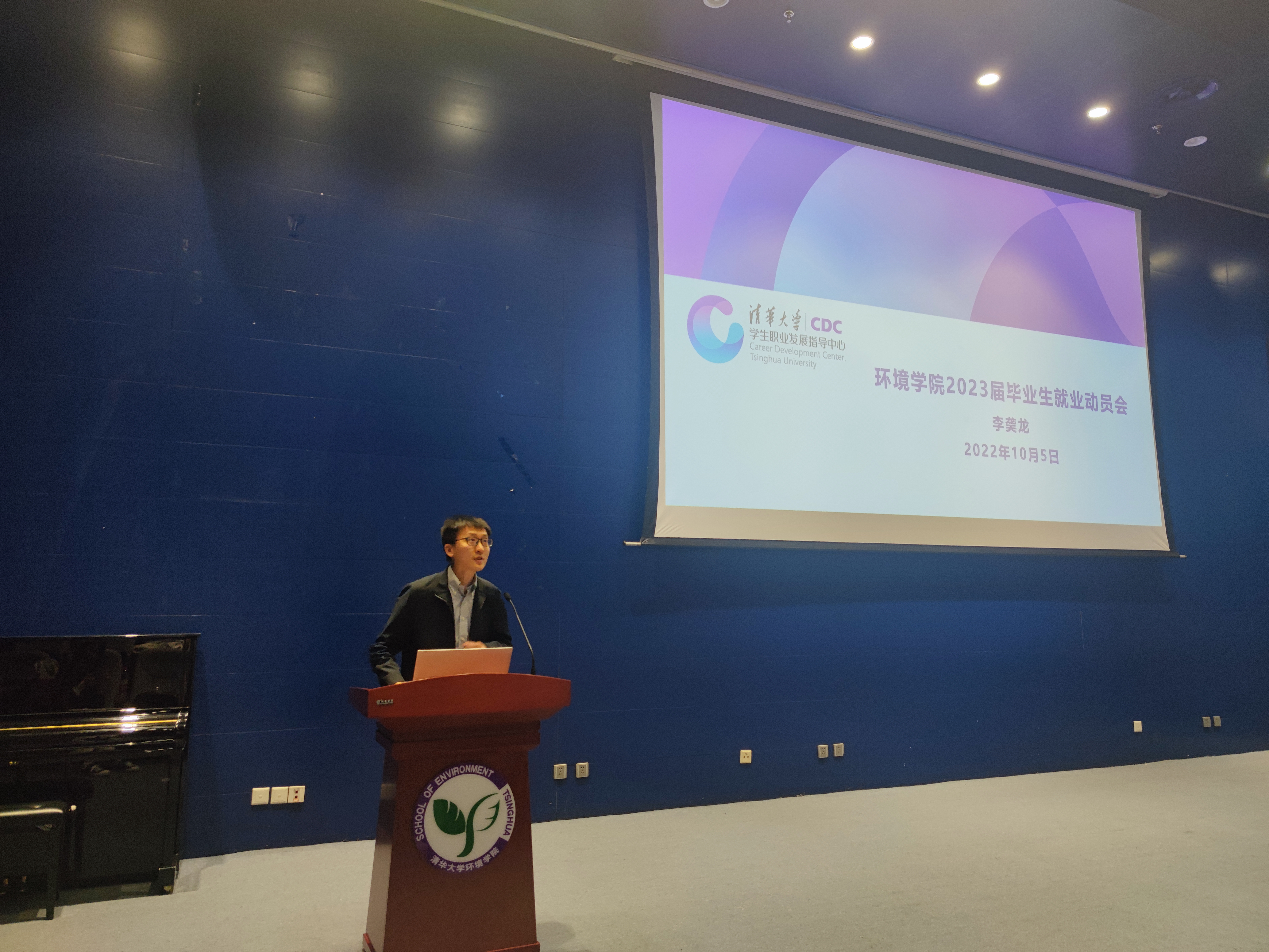 席劲瑛介绍了近五年来环境学院毕业生的总体情况,对毕业去向、地域分布、单位性质等进行了分析,梳理了学院近年来开展的就业引导工作,特别介绍了2022年新推出的环境学院“校友导师计划”,以及将于2023年启动评选的院设“启航奖学金”。他鼓励同学们向优秀校友学习,强调责任担当与勤奋努力,在读过程中要增强专业本领、提升专业能力,在充分了解社会和行业发展形势的基础上,选择适合自己的职业方向,避免盲目跟风和眼高手低,要利用好校内外各种资源,做好充分的就业准备。
