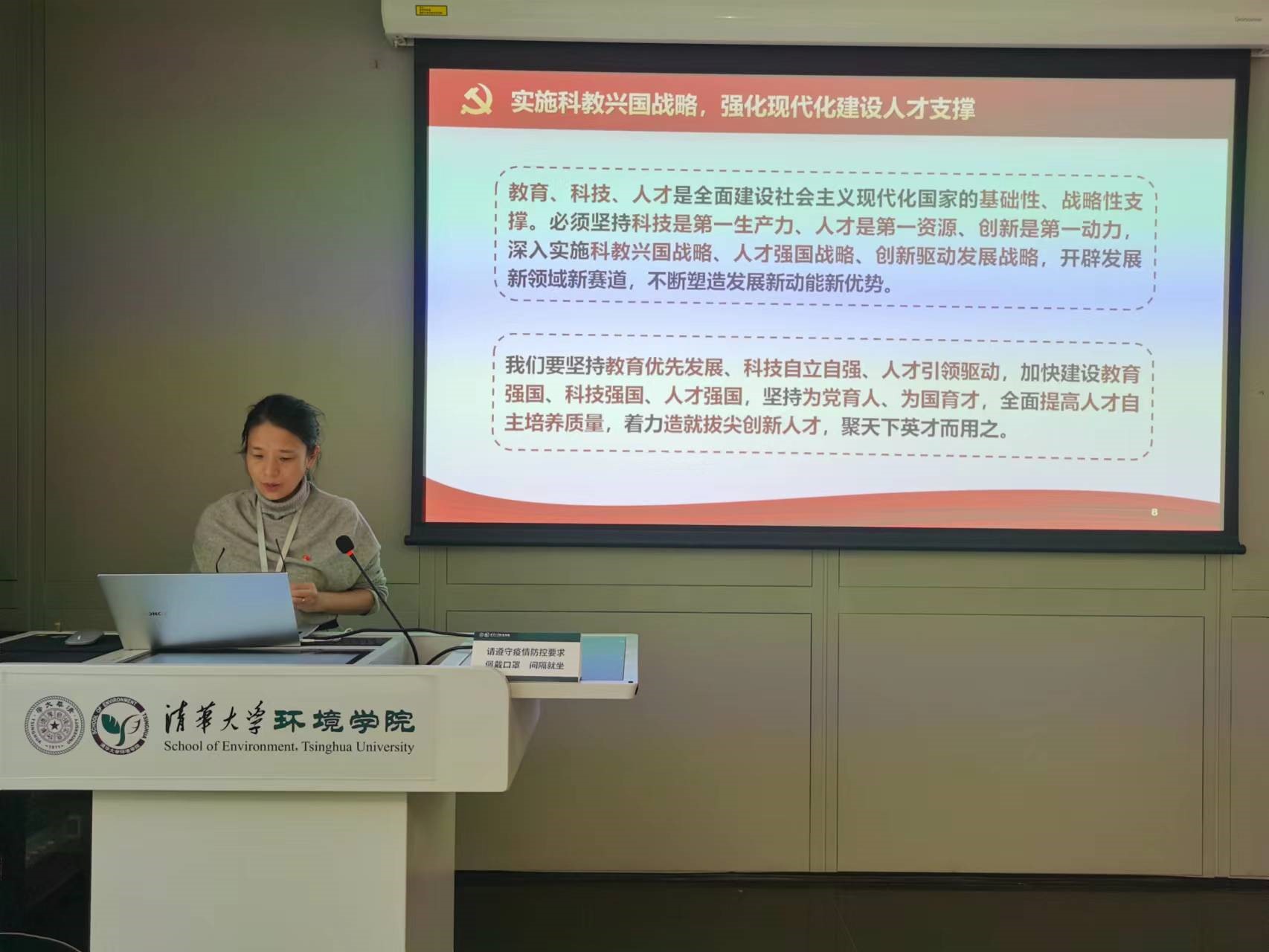 吴静带领大家学习了党的二十大报告,重点围绕“实施科教兴国战略,强化现代化建设人才支撑”“推进文化自信自强,铸就社会主义文化新辉煌”“推动绿色发展,促进人与自然和谐共生”等内容进行了原文学习,并结合实际进行了解读。