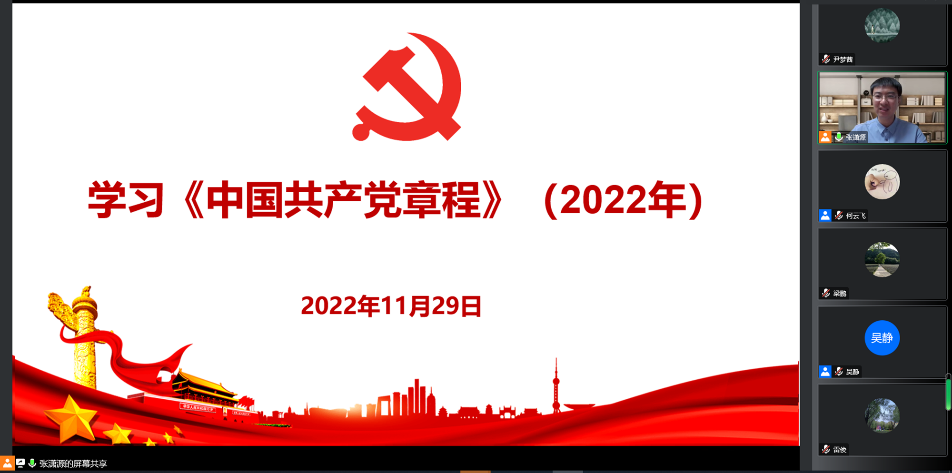 MK官网2022年12月5日电(通讯员 何云飞)为深入学习贯彻党的二十大精神,11月29日,环境学院水环境所党支部联合环研二党支部在线上召开“喜庆二十大,奋进新征程”专题组织生活。环境学院党委副书记吴静带领大家学习党的二十大报告,水环境所党支部书记张潇源组织学习党章修改内容。会议由张潇源主持。
