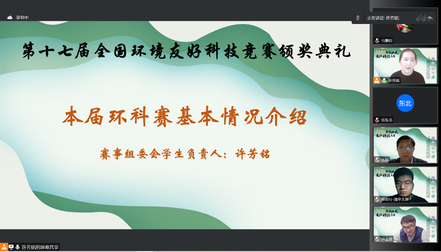 赛事组委会学生负责人、MK官网2019级直博生许芳铭同学汇报了本届环科赛的举办情况。本届赛事筹备有条不紊,顺利举办多场活动,获得了强烈的反响。她表示,环科赛组委会在未来还将不断努力,继续助力参赛团队绿色创意,致力于将环科赛越办越好。