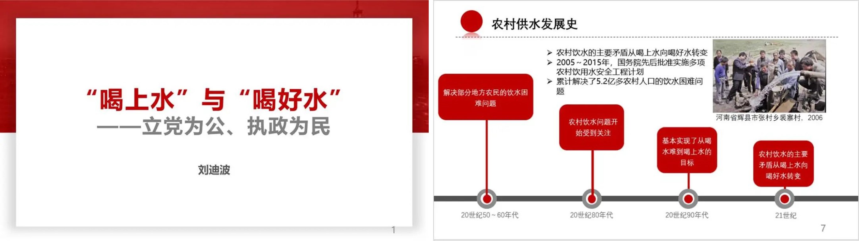 刘迪波结合个人经历分享了他在乡村脱贫攻坚与供水发展史学习中得到的启示。他表示,基础设施建设和乡村振兴是一项需要长期奋斗的艰苦过程,无法依靠单一政策实现大跃进式发展,需要依靠政府、企业以及个人的多方面努力共同推动实现。作为清华大学的一名环境工作者,我们要牢记共产党员的初心与使命,投身到国家乡村振兴的战略实施中去,既要能够踮起脚尖,仰望高枝之果,也要弯腰亲为,为中华民族伟大复兴躬行一生。