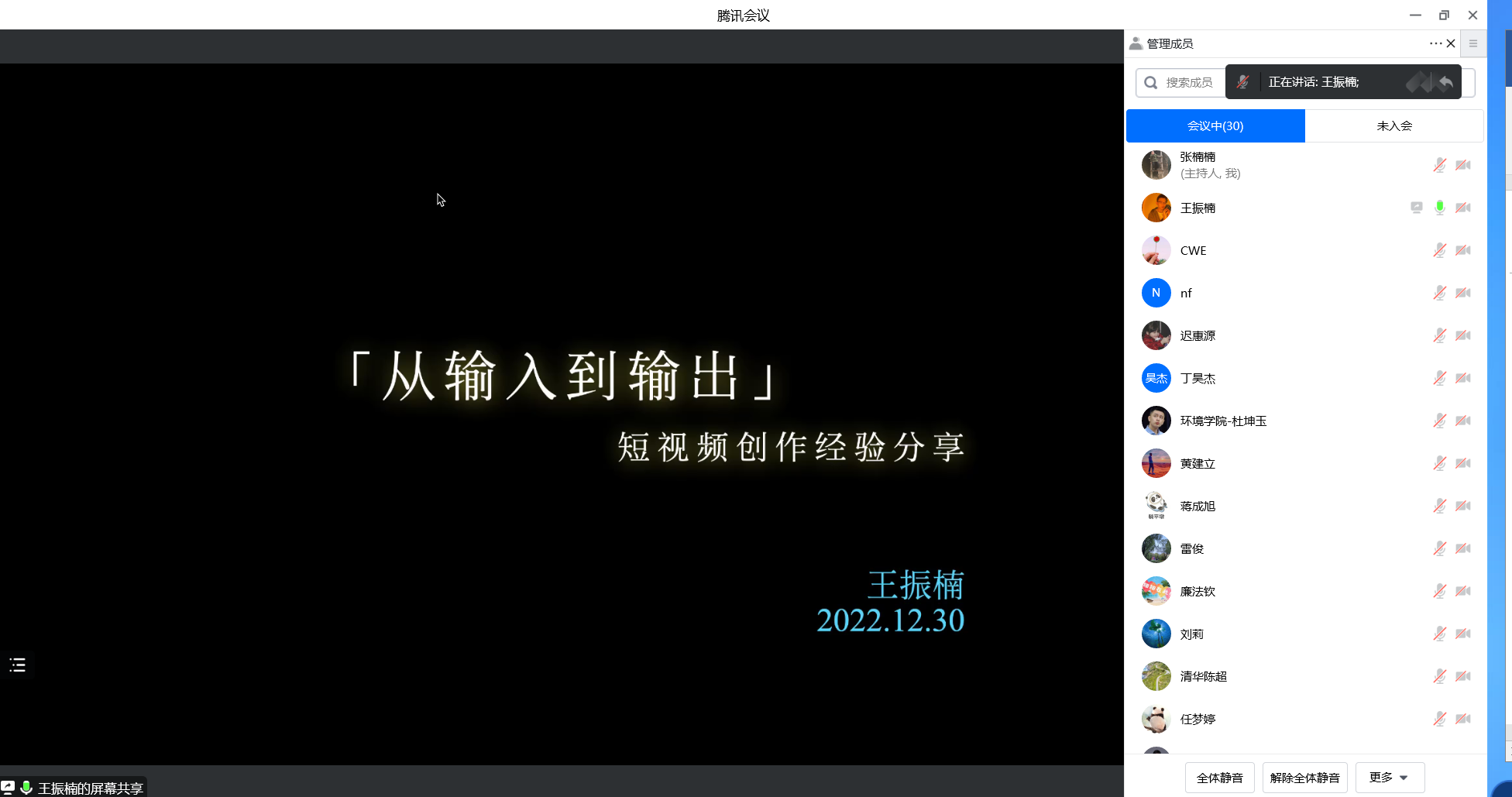MK官网2022年12月31日电(通讯员 张楠楠)12月30日下午,环境学院新闻宣传工作交流培训会在线上举行。本次会议邀请学院宣传委员陈超介绍了学院新闻宣传工作相关制度,科研助理王振楠分享了短视频创作经验。学院30余名师生参加了会议。