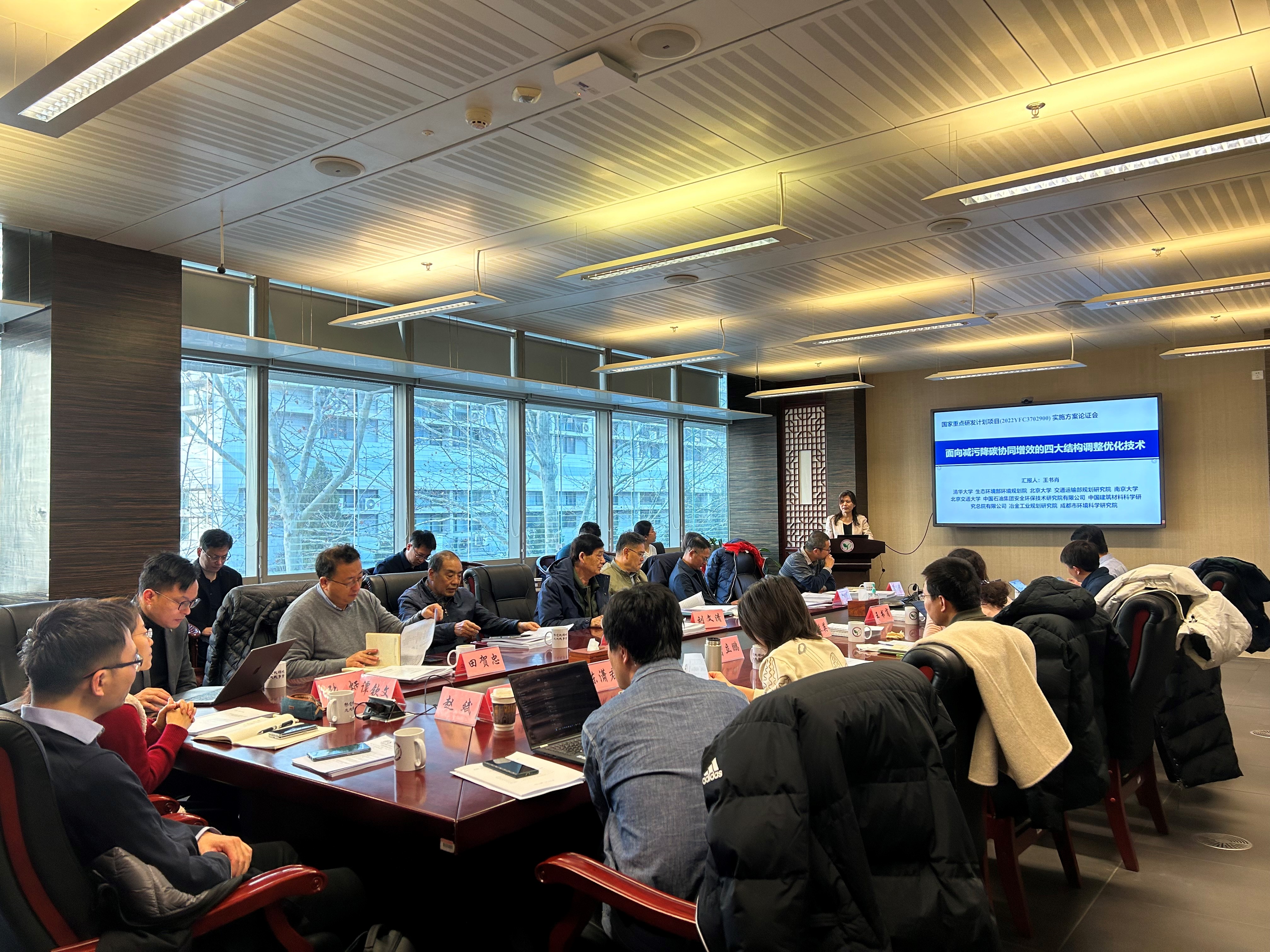 专家组成员对项目和课题的实施方案进行了详细质询和认真讨论,一致同意项目实施方案通过论证,并从大气污染物和温室气体协同减排数据质控、构建经济能源-大气环境系统减污降碳耦合评估模型、重点领域和典型区域示范应用等方面提出了详细的意见和建议。