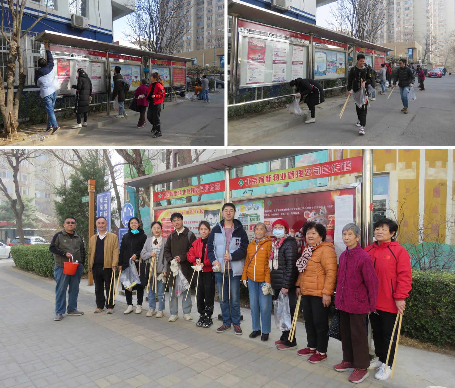 在活动中,志愿者们首先在社区开展了卫生大扫除活动。志愿者们手执夹子、垃圾袋,发扬不怕苦、不怕脏的精神,三五成群、分工合作,对塑料垃圾、烟头、废纸屑等杂物进行了认真的清理打扫,并擦拭了小区内的宣传栏橱窗。大家积极主动、干劲十足,不仅清除了社区居民的日常生活垃圾,也美化了社区卫生环境。经过一上午的努力,志愿者们用自己的实际劳动使育新花园社区焕然一新。