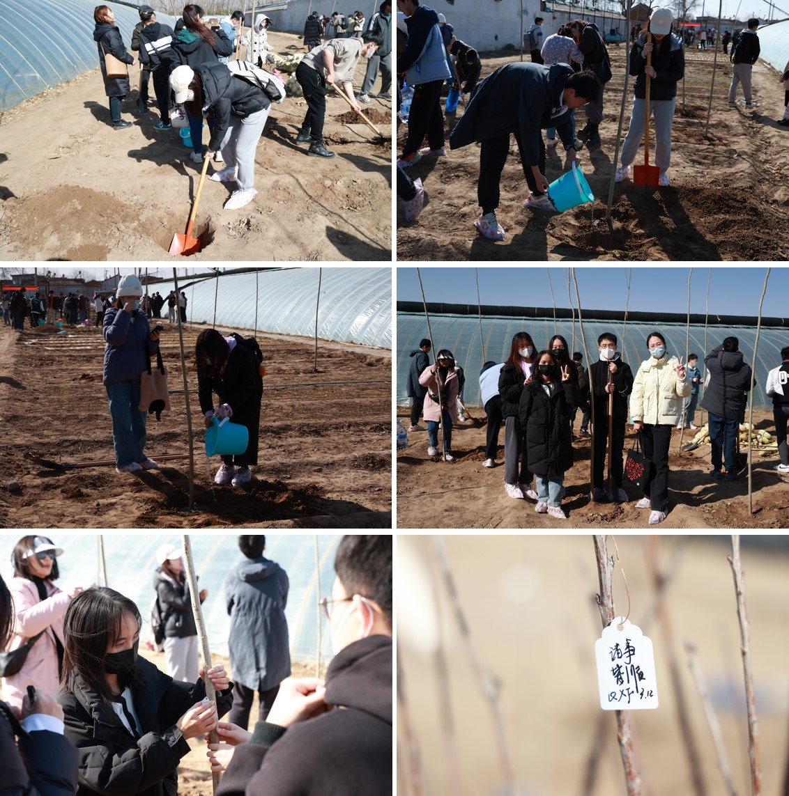 在植树基地,同学们在现场工作人员的指导下,井然有序地进行植树活动。他们挥锹铲土、扶树填坑、踏土夯苗、培土浇水,细心地栽种每一棵树苗。最后,同学们在专属植树牌上写下自己的心愿祝福,并挂在新栽种的树苗上,在绿植前共同道出“共建生态文明”的宣言。整个植树活动中,同学们热情投入,感受到了劳动和志愿服务的快乐,也进一步领悟了人与自然和谐共生的价值意蕴。