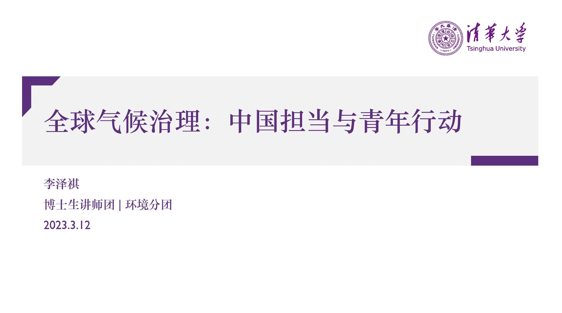 活动过程中,清华大学博士生讲师团环境分团的讲师李泽祺还为同学们带来了题为“全球气候治理:中国担当与青年行动”的线上宣讲。