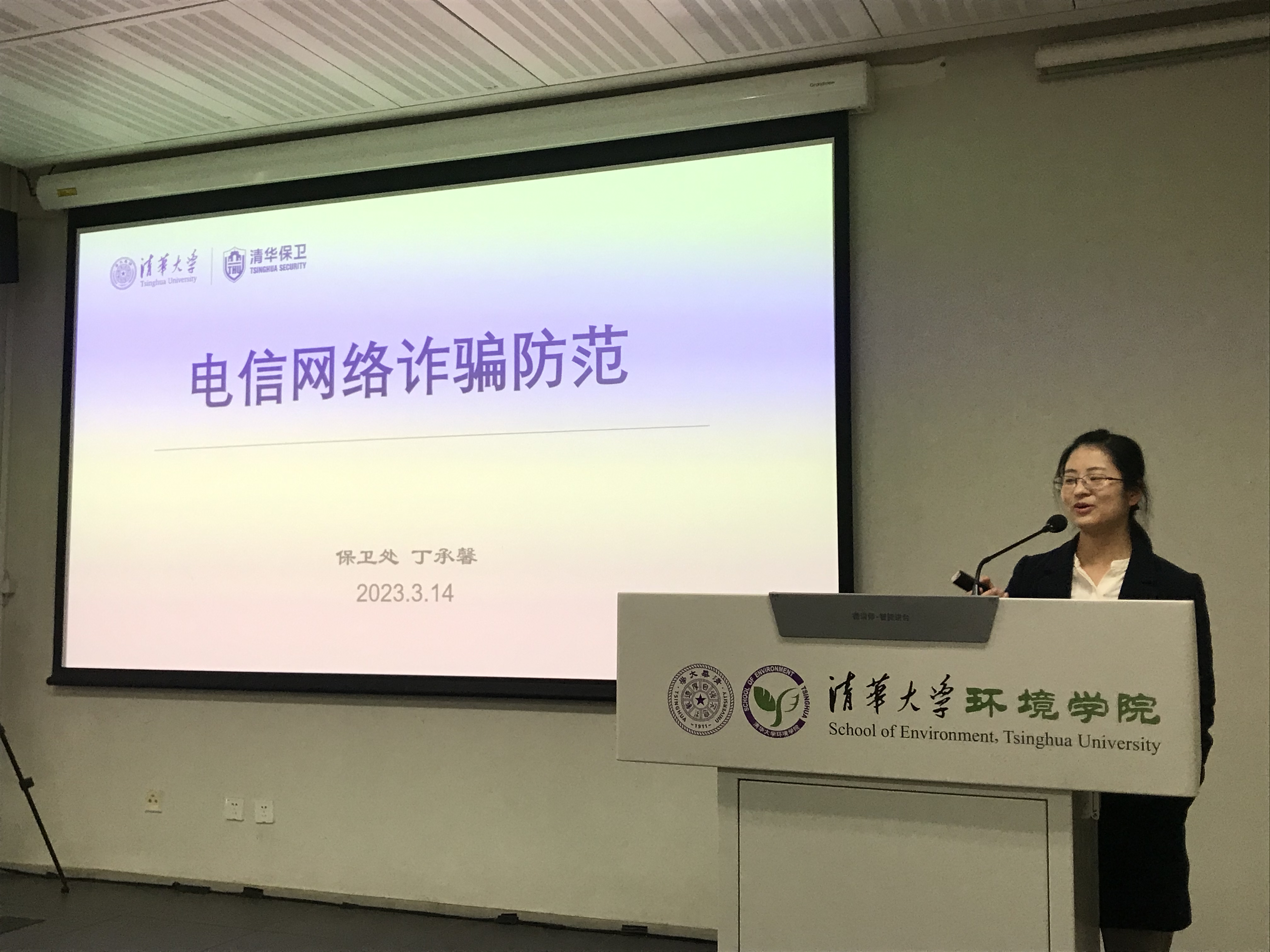 MK官网2023年3月21日电(通讯员 周琴 宋玥瑶)3月14日,环境学院防诈骗知识宣讲和案例分享会在学院119会议室举行。会议邀请清华大学保卫处法制高级主管丁承馨、中关村派出所驻清华社区副队长杨楠作主题分享,学院安全助理周琴主持会议,70余位学院师生和物业人员参加会议。