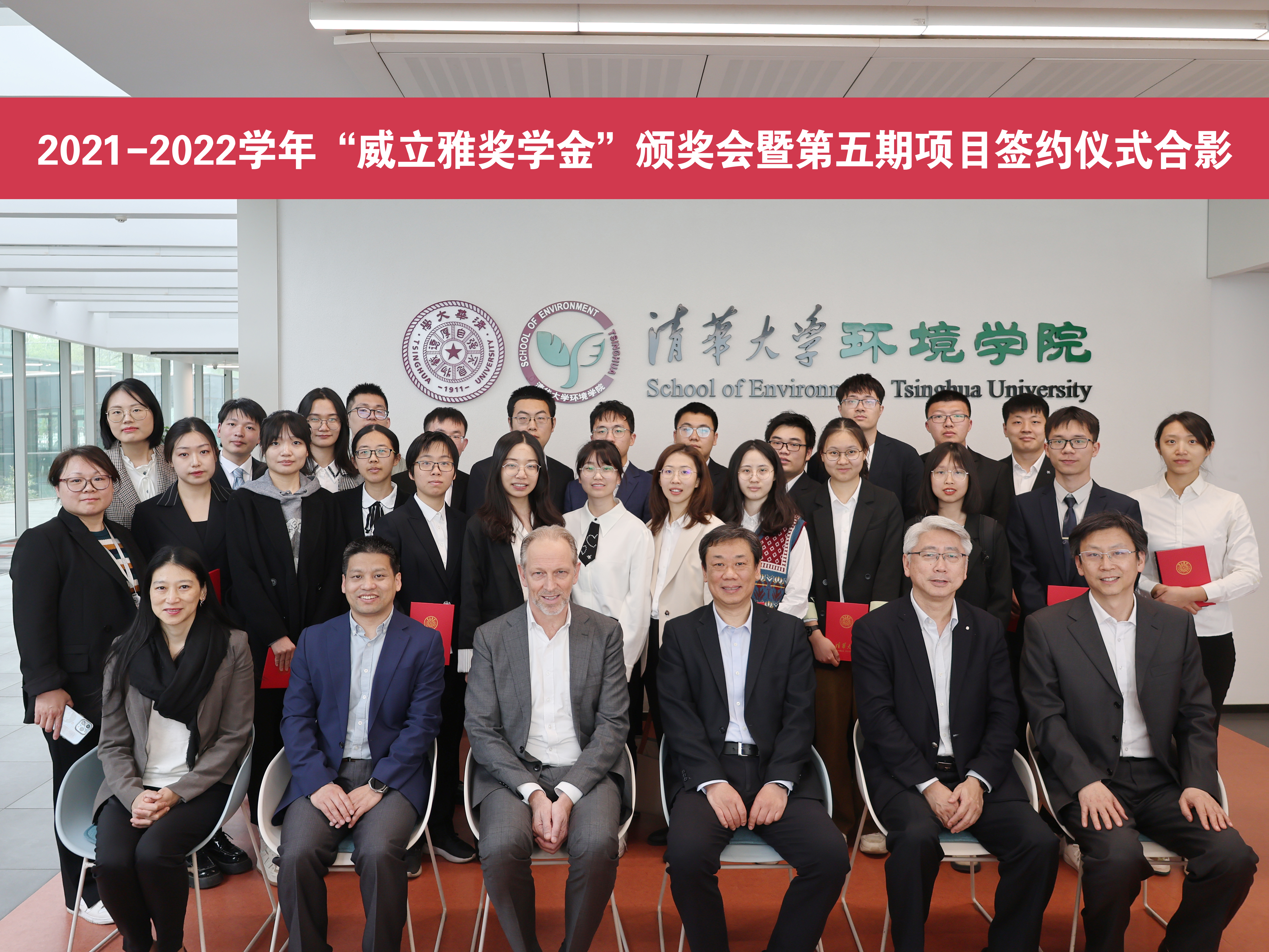 威立雅奖学金于2010年由威立雅集团出资设立,迄今已评选13届。2021-2022学年,共有29名本科生与研究生获得“威立雅奖学金”,其中综合优秀奖11人,个人单项奖18人。刘毅与汪豪铭、岳东北与黄晓军分别为获得综合优秀奖和个人单项奖的同学颁奖并合影留念。2019级本科生张春生、2020级博士生郭柯卉分别代表获奖学生发言。他们对学院和威立雅集团表示由衷感谢,并分享了各自的学习科研情况。他们一致表示,希望未来能够在环境领域坚持从事学术研究,一起为中国乃至世界的环境事业添砖加瓦。