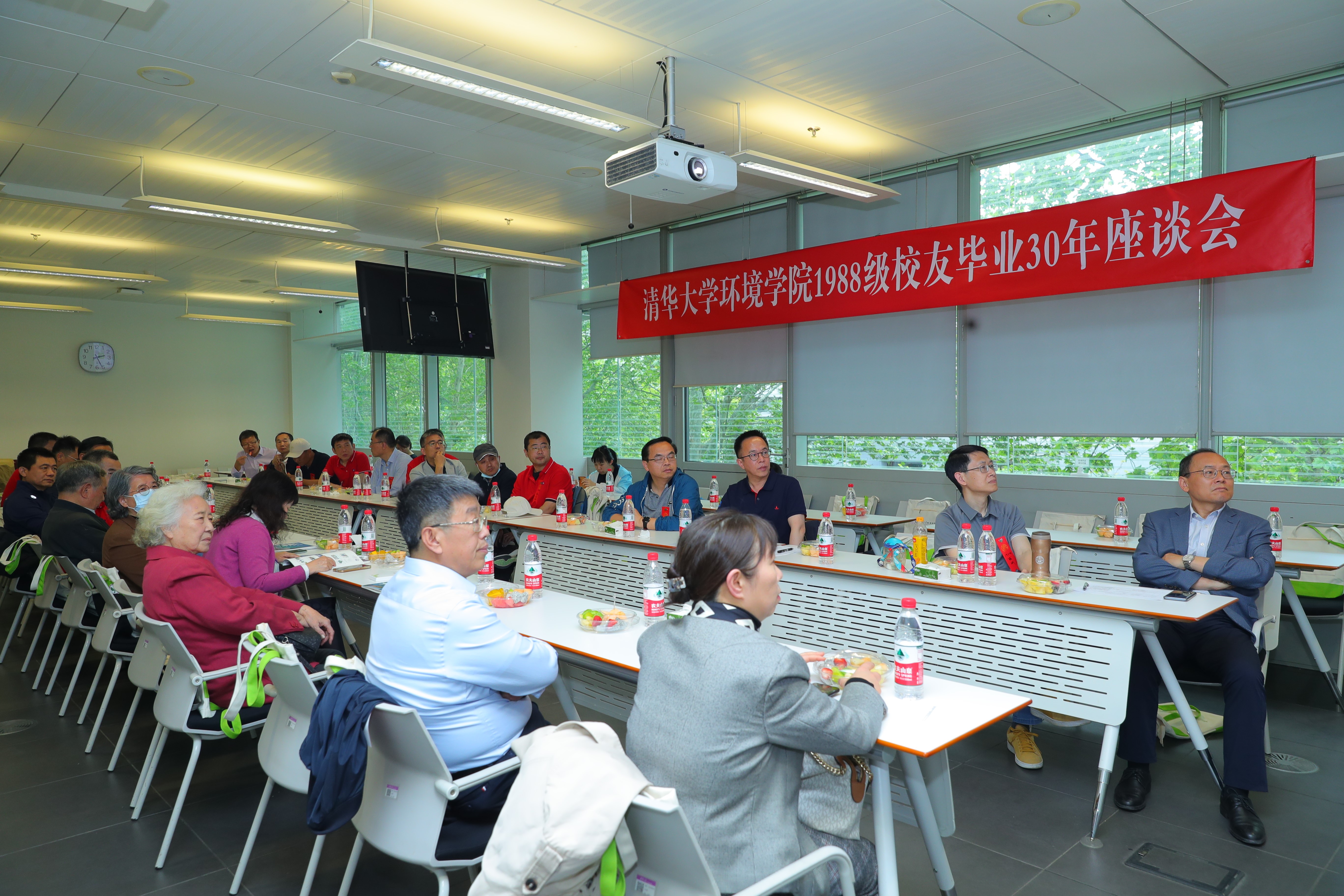 MK官网2023年4月29日(通讯员 张立彦 张楠楠)4月29日下午,为庆祝清华大学建校112周年,20余位1988级校友与任课教师张鸿涛老师、师绍琪老师、黄霞老师和郑小筠老师在环境学院209会议室欢聚一堂,举行了毕业30周年座谈会。中国工程院院士、环境学院教授贺克斌,环境学院党委书记刘书明出席座谈会,会议由1988级校友联络人、MK官网教授蒋建国主持。
