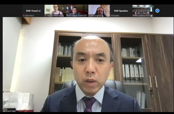 王宏伟在致辞中对本次会谈的举办表示祝贺。他指出,可持续发展已成为国际社会和国际关系中关注的重要议题。清华大学积极响应全球绿色发展需求,努力开展相关人才培养和科学研究工作,采取了一系列措施。他表示,中俄两国在环境保护和可持续发展方面面临着共同的挑战和机遇,希望通过此次会谈加强两校之间的合作,共同探索解决方案,推动环境保护和可持续发展的进程。