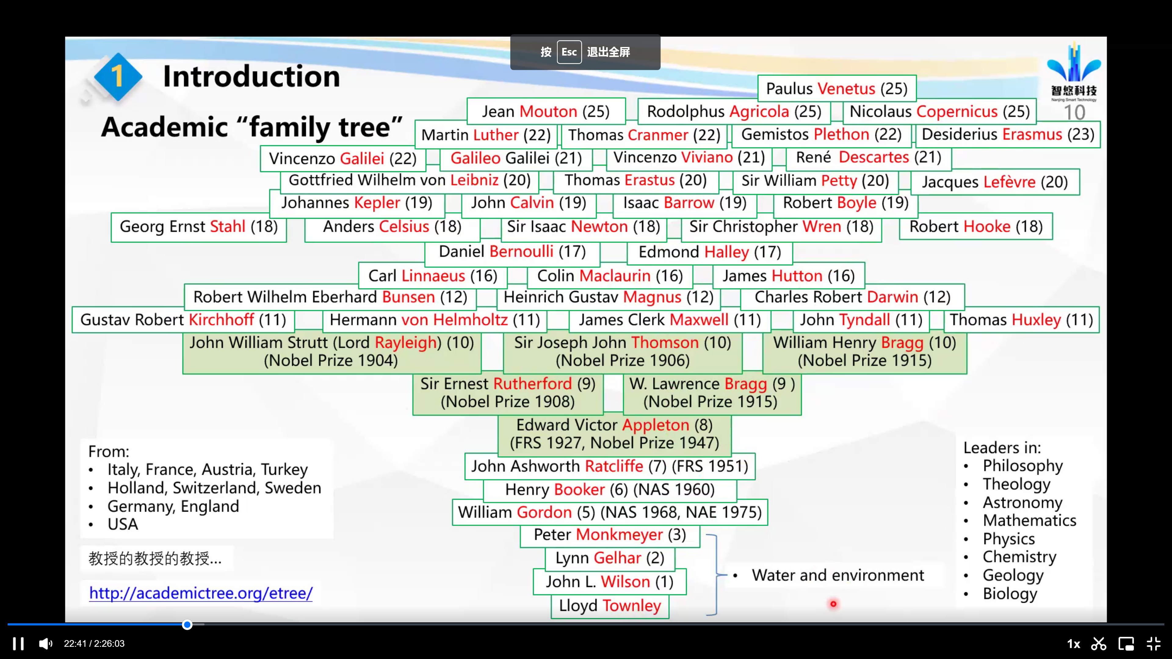 Lloyd Richard TOWNLEY展示的学术族谱一直追溯到哥白尼