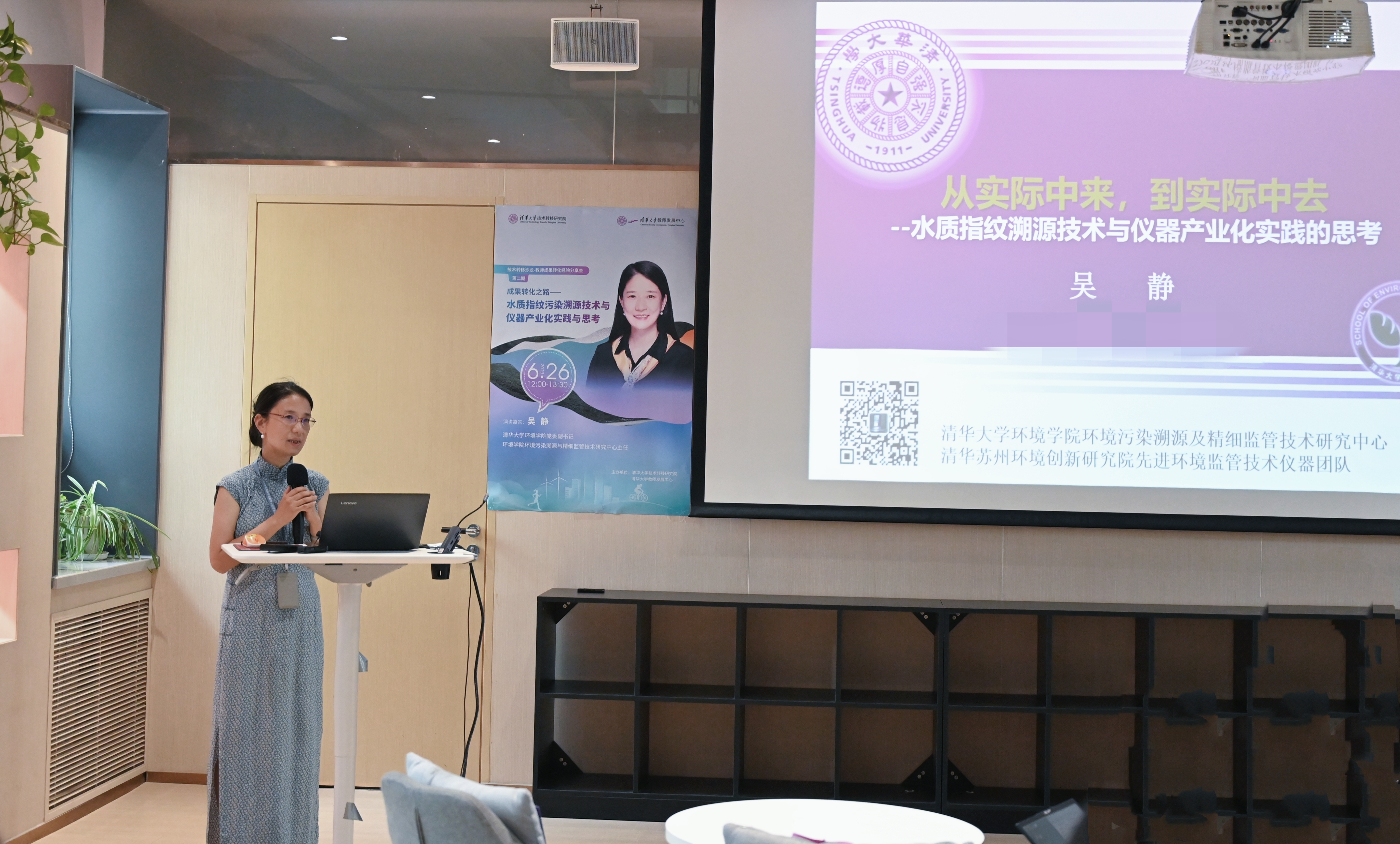 吴静表示,工科的研究课题“从实际中来”,研究成果“到实际中去”,社会实际需要的并非是最先进的技术,而是稳定可靠简便的技术,“傻瓜技术”更容易推广。她介绍了如何从发现污染排放源溯源的难题,到开发水质荧光指纹溯源技术和相关仪器设备,并一步步构建起产学研用的体系。目前该技术和仪器已在全国25个省市自治区应用,成为水环境精准治理和精细监管的有力新工具。吴静还从选题、队伍、发展路径等方面向参会教师分享了自己关于产业化的思考。