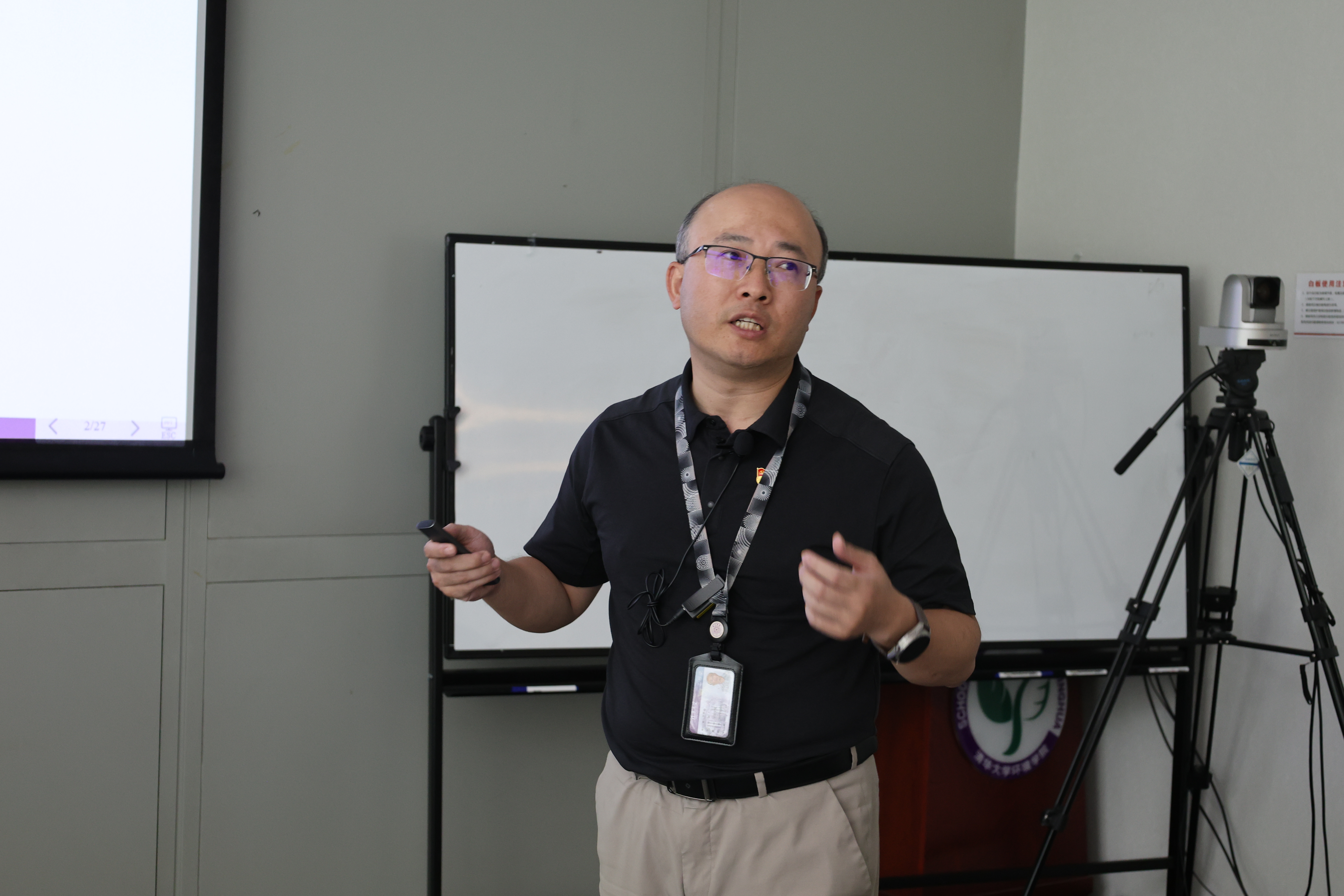 环境学院副院长兰华春以“通过调查研究,提高环境学院的硬件保障能力”为题讲授专题党课。他从大兴调研之风的历史根源讲起,强调“重视调查研究,历来是中国共产党的光荣传统”,并带领大家共同学习了毛泽东同志在大革命时期和土地革命时期的三个经典调研报告。他表示,毛泽东同志探索中国革命道路和社会主义建设道路,开辟并推进马克思主义中国化,与高度重视并长期坚持调查研究密不可分,非常值得学习和借鉴。此外,他详细介绍了对学院空间资源现状的调研,并分析了硬件保障工作面临的难题。他表示,在学校全面实施“十四五”规划与2030战略规划、迈向世界一流大学前列的关键时期,环境学院面临着新的学科发展机遇和更加复杂的挑战,将结合自己分管工作,坚持深入实际、深入群众,深入开展调查研究,加强理论学习,提高履职本领,一如既往地扎扎实实做好分管领域工作,为全院师生提供更加安全、优质的教学科研条件。