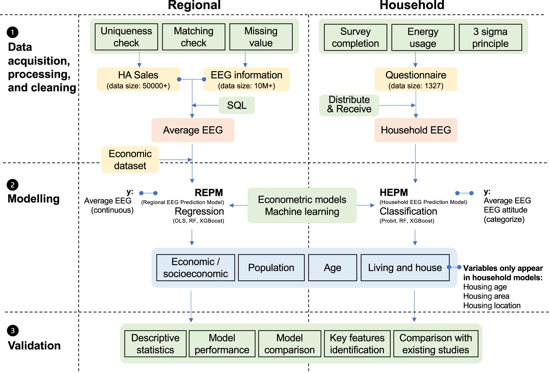 针对这一问题,课题组融合1800余万条家电销售和家电参数等多源数据和家庭入户调查数据,通过机器学习算法进行数据清洗与填补并构建CEEG数据集。该数据集覆盖了2012-2019年中国内地30个省份波轮洗衣机、滚筒洗衣机、电热水器、定频空调、变频空调5种主要白色家电按销量加权的平均能效等级信息,以及北京市1327个样本家庭的家电平均能效等级信息。