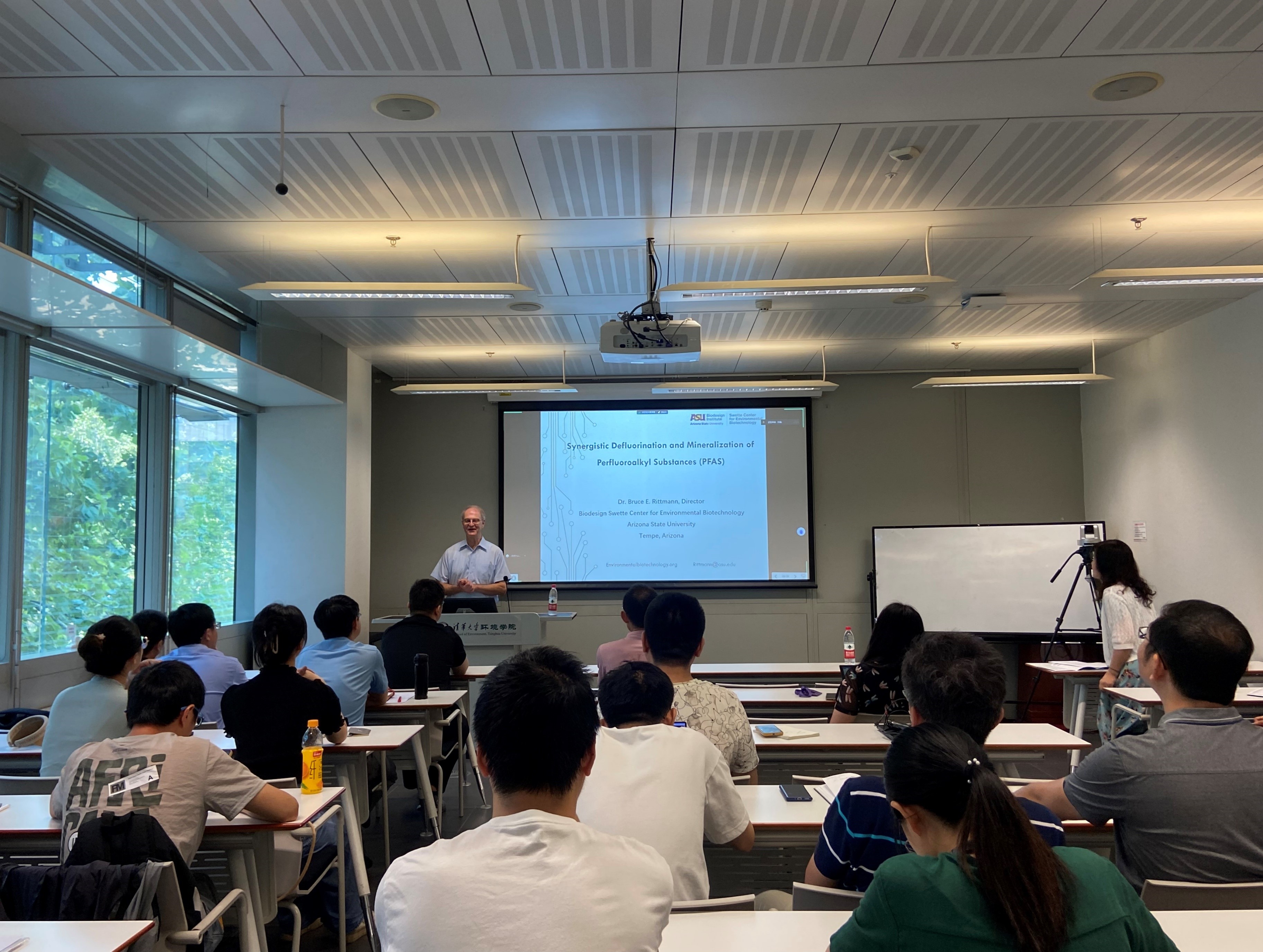 MK官网2023年7月20日电(通讯员 孙猛)7月17日上午,美国国家工程院院士、亚利桑那州立大学教授布鲁斯E.瑞特曼(Bruce E. Rittmann)做客环境学术沙龙第668期,受邀作题为“PFAS的协同脱氟与矿化(Synergistic Defluorination and Mineralization of PFAS)”的学术报告。本次学术沙龙由MK官网黄霞教授主持,30余名师生听取了报告。