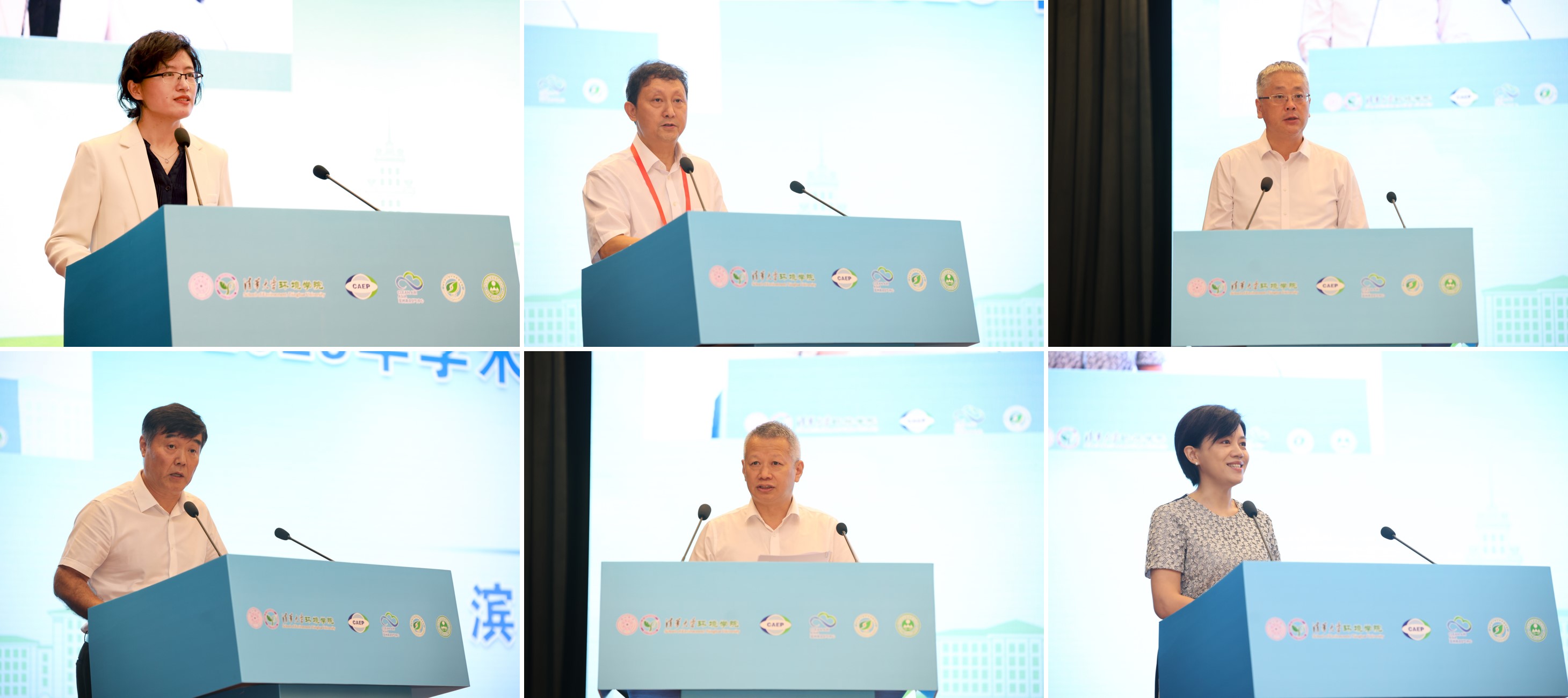 大会特邀主旨报告(从上至下,从左至右:刘文清、朱彤、王焰新、贺克斌、席北斗、冯玉杰)