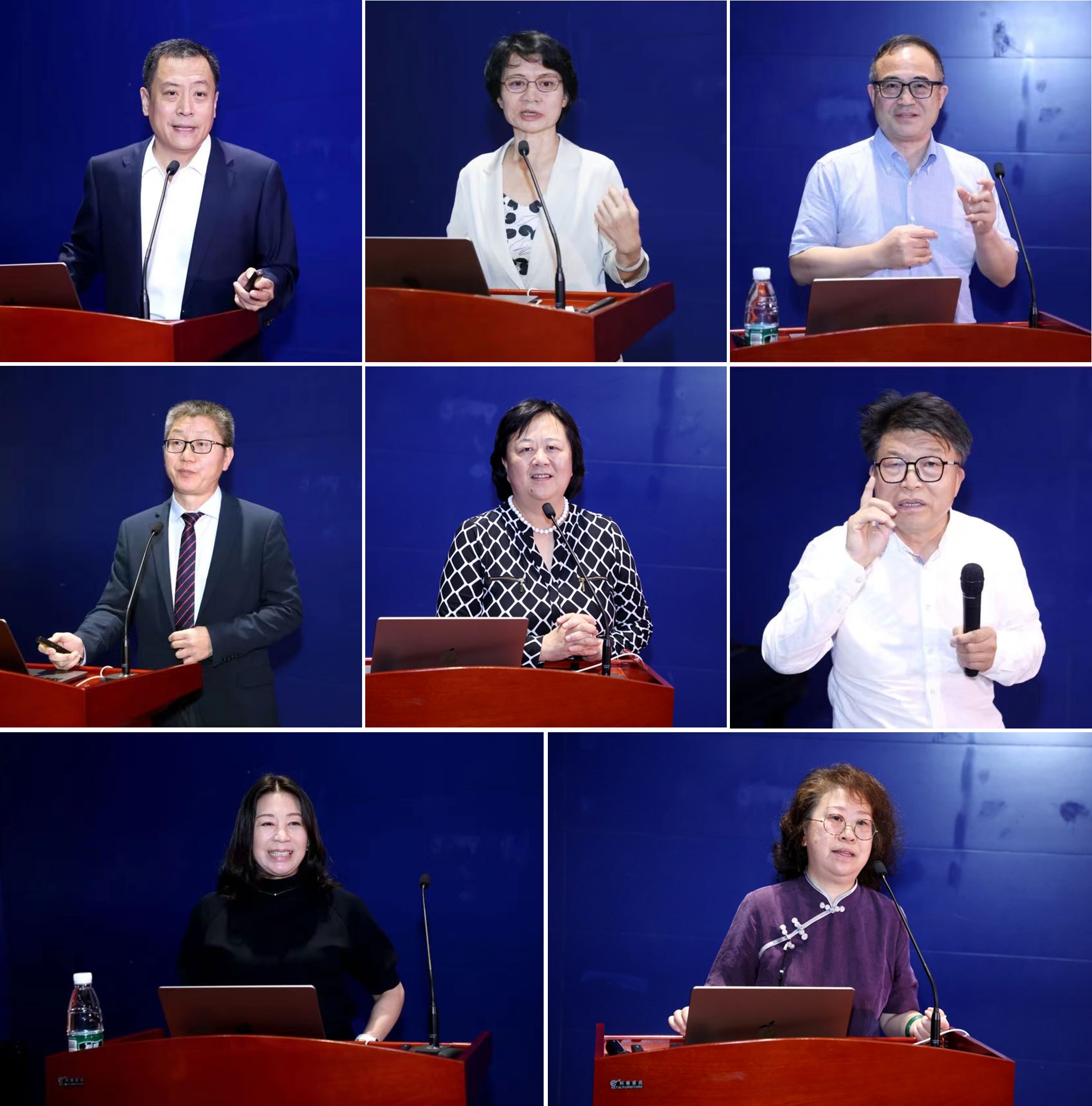 校友代表分享(从左至右、从上至下:刘旭、丁琼、李凌、范晓军、蒋宇红、年跃刚、张博苒、何永)