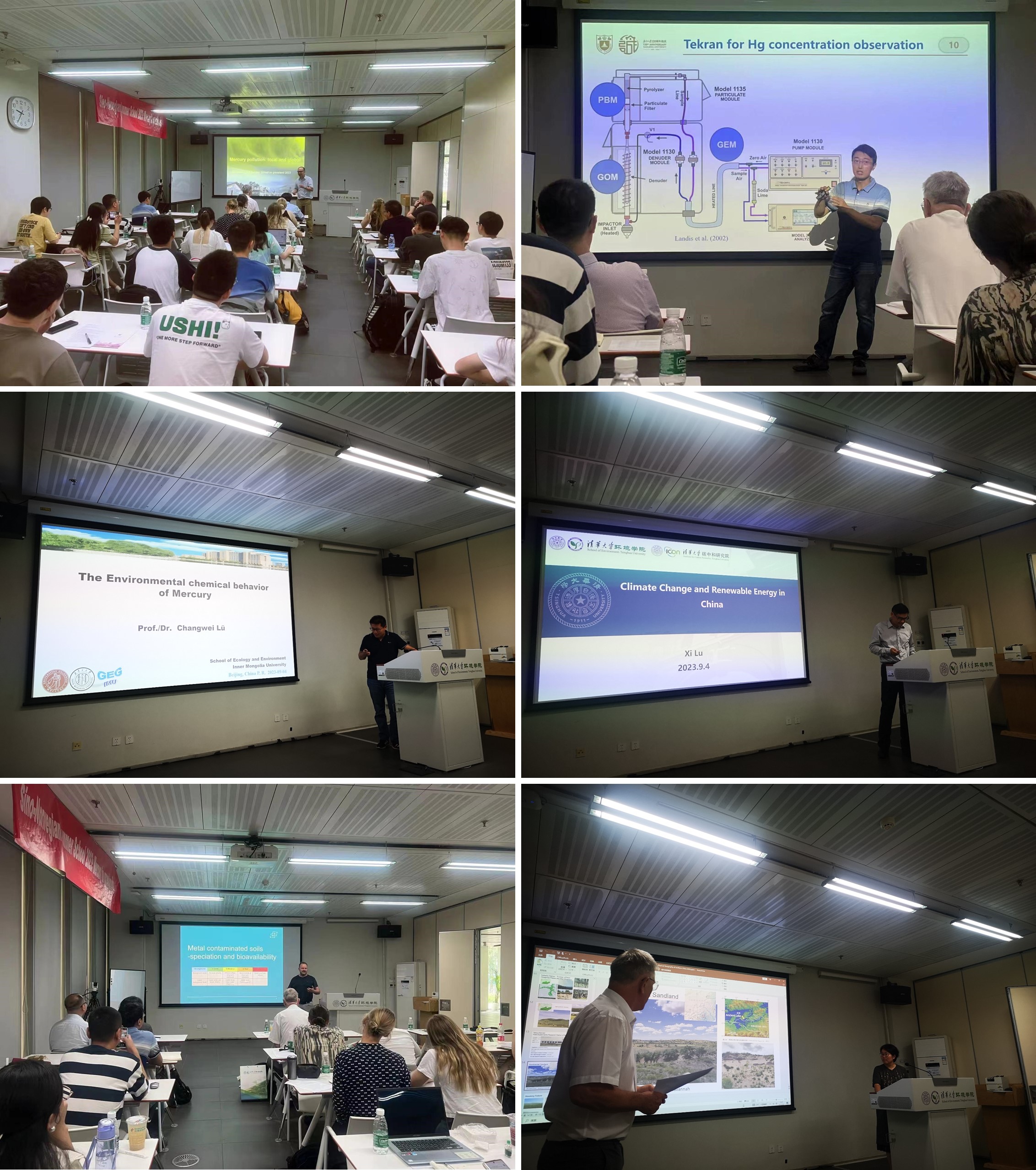 在理论教学环节,段雷教授、张磊副教授、吕昌伟教授、鲁玺教授、黄永梅教授和Åsgeir Almås教授分别针对全球与中国的汞污染问题、陆地与大气汞交换通量监测方法、汞污染对草原的影响、草原可再生能源发展、我国森林草原地区的自然地理与气候特征,以及土壤汞和其他重金属污染的研究方法等主题展开详尽的讲解,为后续学员们在我国内蒙古草原开展的科研实践活动打下理论基础。