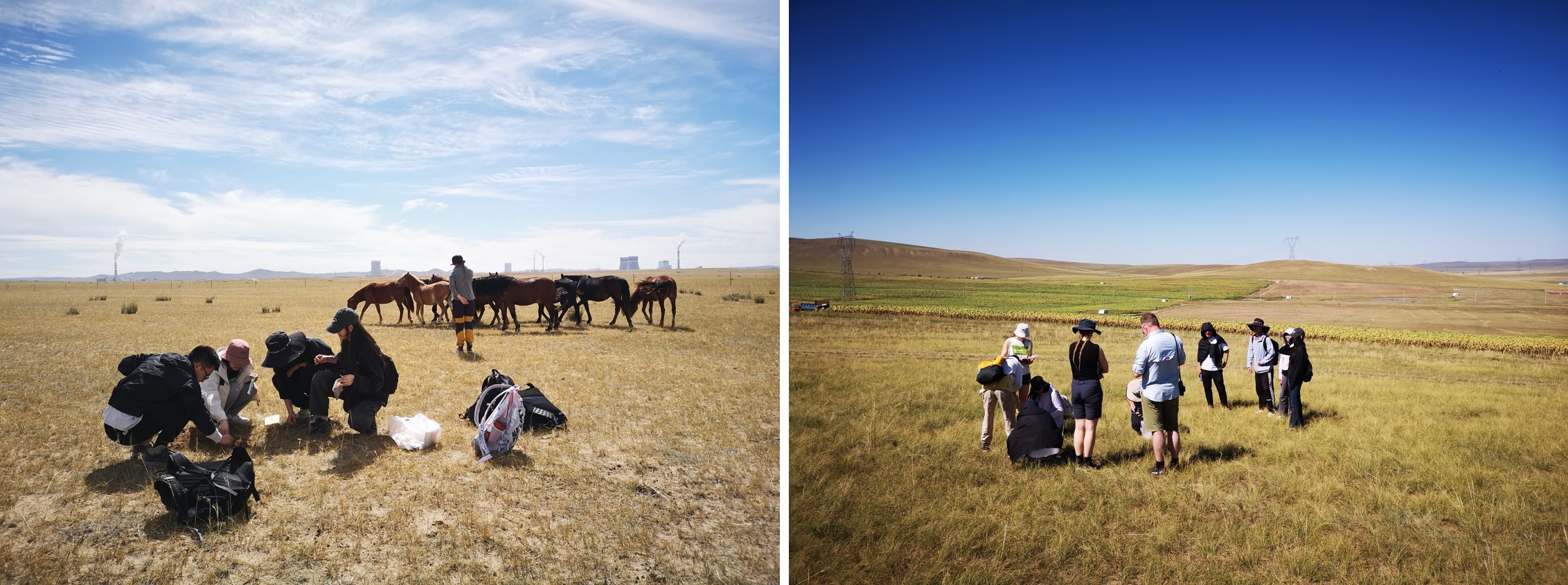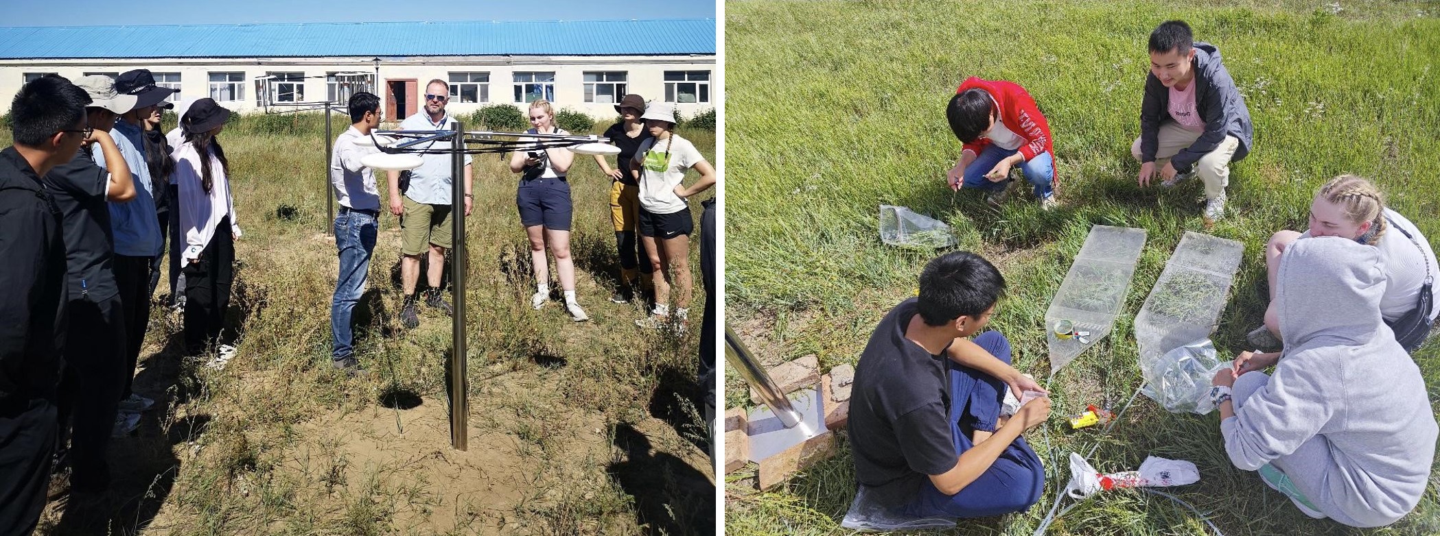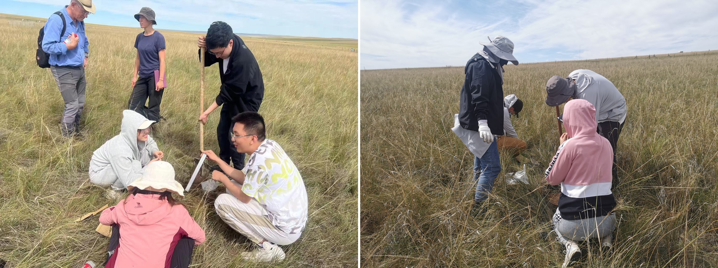 第二、三组学员们在内蒙古大学的放牧实验样地进行采样