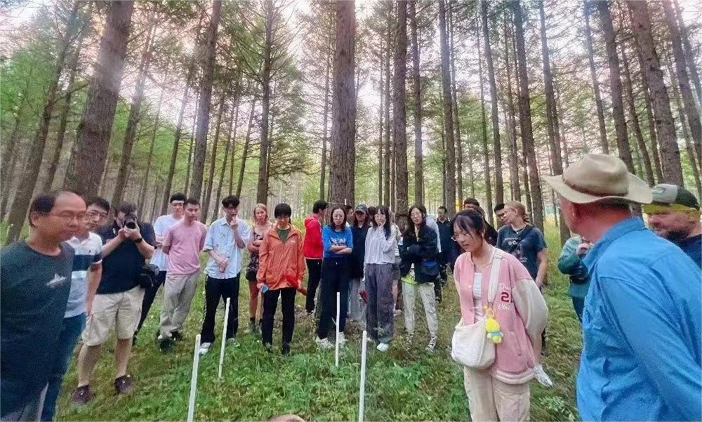 在北京大学塞罕坝生态站,曾发旭老师介绍了生态站的历史与站上开展的研究工作,并带领学员们深入实验林地观摩学习。导师们就地取材,向学员们讲解森林生态、观测装置以及实验设计等相关知识。翌日,Jan Mulder教授结合森林土壤剖面,讲解土壤的特征与形成过程,学员们在提问讨论与切身感受土壤中收获了知识,并兴致勃勃地在不同土层上采集了土样,将与后期采集的草原土壤进行比较分析。