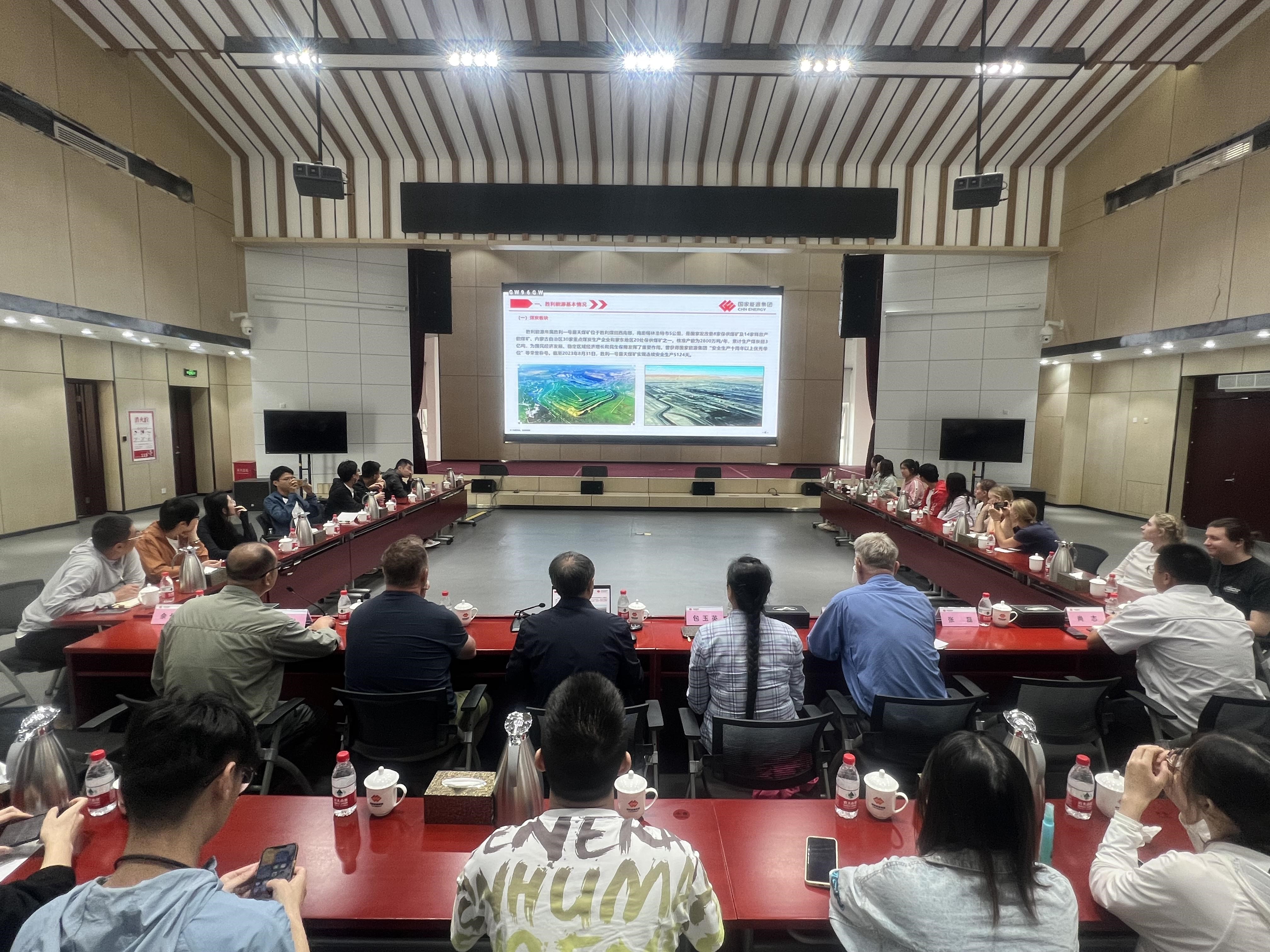 国能北电胜利能源有限公司有关负责人带领大家参观了胜利一号露天煤矿,并详细介绍了公司的宗旨、发展历程和未来规划,特别是公司在草原生态保护、矿区土壤修复和新能源发展等方面采取的重点措施。学员们登上矿山远眺,深刻感受了草原的辽阔和露天煤矿的壮观。