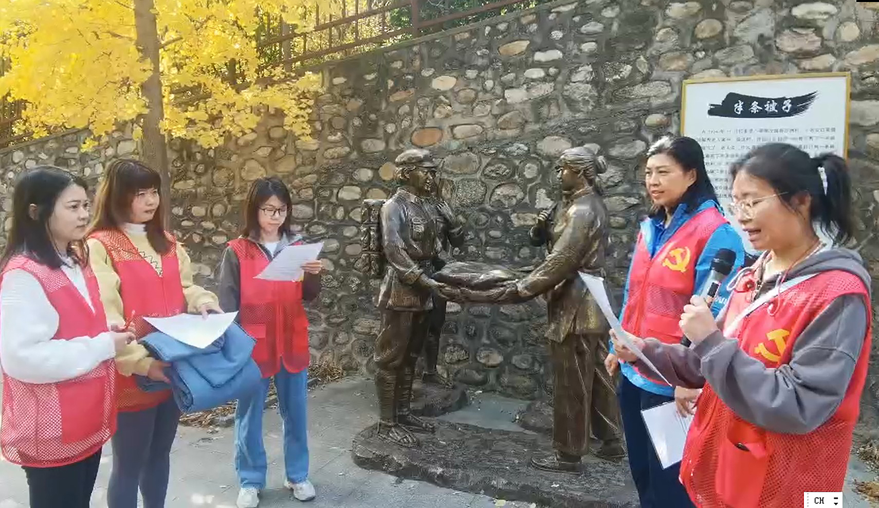 讲好红色故事。在参观文化长廊过程中,党员群众们沉浸式重温了英雄年代的革命故事,包括倔强的小红军、激战腊子口、半条被子等,且亲身参演了“半条被子”的故事。通过沉浸式体验,大家进一步了解了革命先辈们的光荣传统和优秀品质,勉励大家珍惜来之不易的幸福生活,要自觉继承革命传统,以满腔热忱奋进新征程,建功新时代。