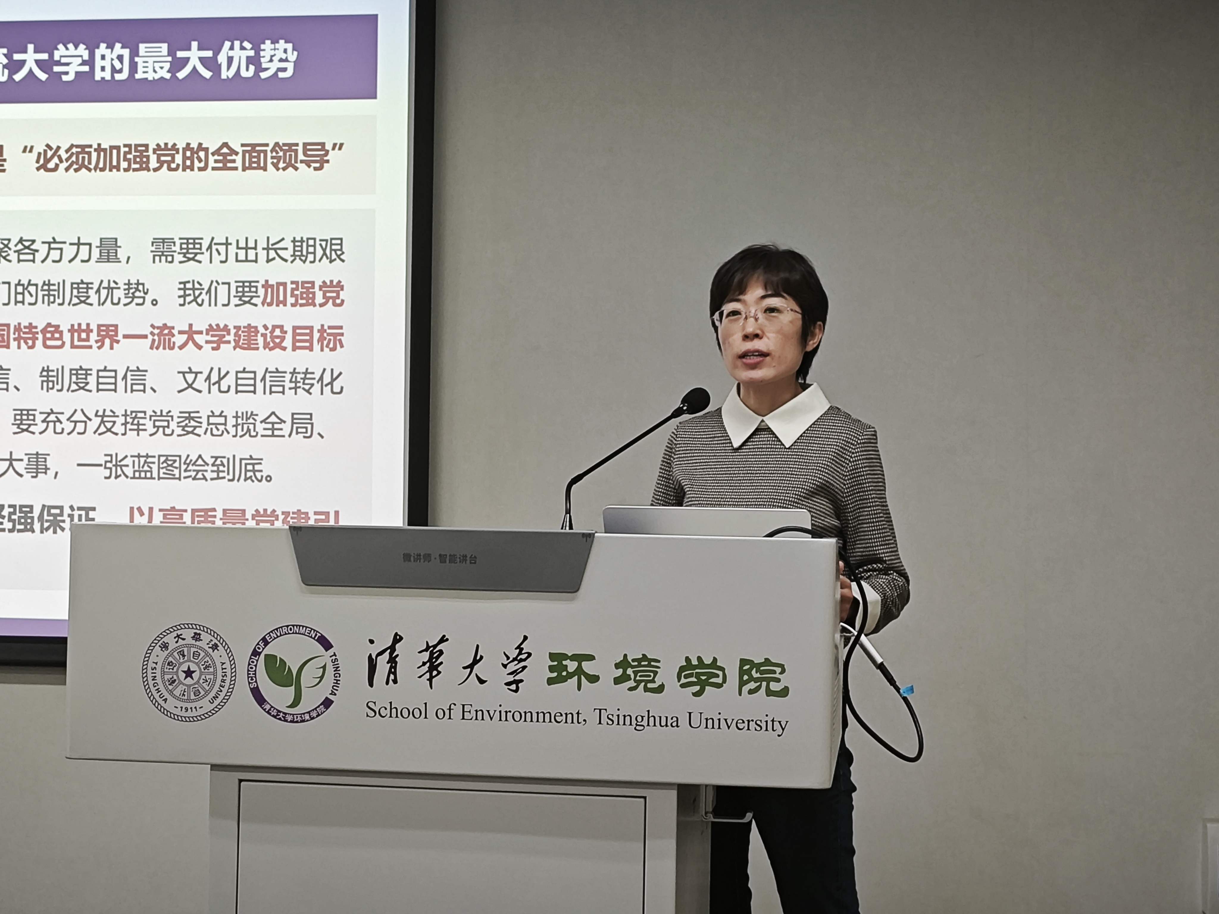 梁静以“增强党组织政治功能和组织功能 以高质量党建引领高质量发展”为题作报告。她结合党的二十大和学校第十五次党代会有关加强党的领导的精神,讲解了高校基层党组织政治功能和组织功能的内涵;对标《中国共产党普通高等学校基层组织工作条例》中的师生党支部主要职责,介绍了学校党委增强基层党组织政治功能和组织功能的重要工作进展;分析了目前党支部工作面临的挑战及对策措施。她表示,院系级党委和基层党支部要进一步增强政治功能和组织功能,有效实现党对学校的全面领导,以高质量党建引领学校各项事业高质量发展。
