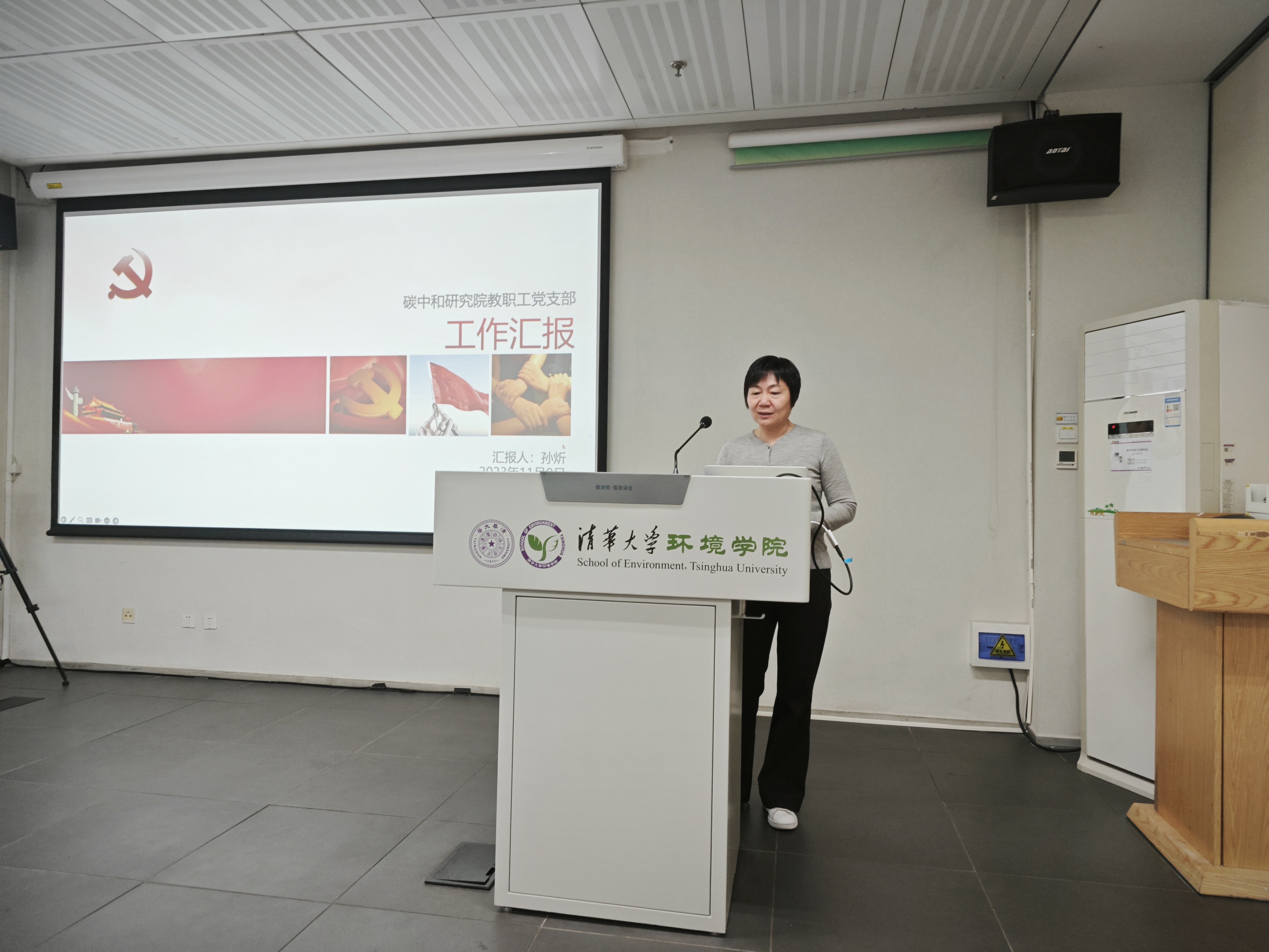随后,碳中和研究院党支部书记孙炘从党支部工作特点、支部建设、开展主题教育、促进“一融双高”等方面,交流了党支部工作。
