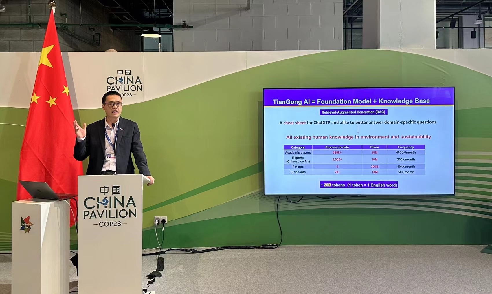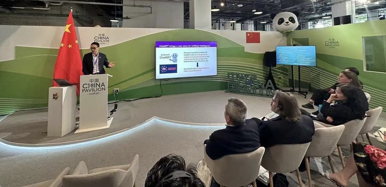 徐明发表题为“大语言模型在环境和可持续发展中的应用”的主旨演讲。他指出,ChatGPT带来了人工智能的新浪潮,然而,像ChatGPT这样的基础模型的领域知识仍比较通识和基础,也可能会产生幻觉、虚假引用等情况,难以直接满足专业领域的需要。在此背景下,天工计划推出目前全球首个在环境和可持续性方面的大语言模型应用“Tiangong AI”,向国际社会展示中国在绿色低碳数字化转型领域的创新实践和进展。