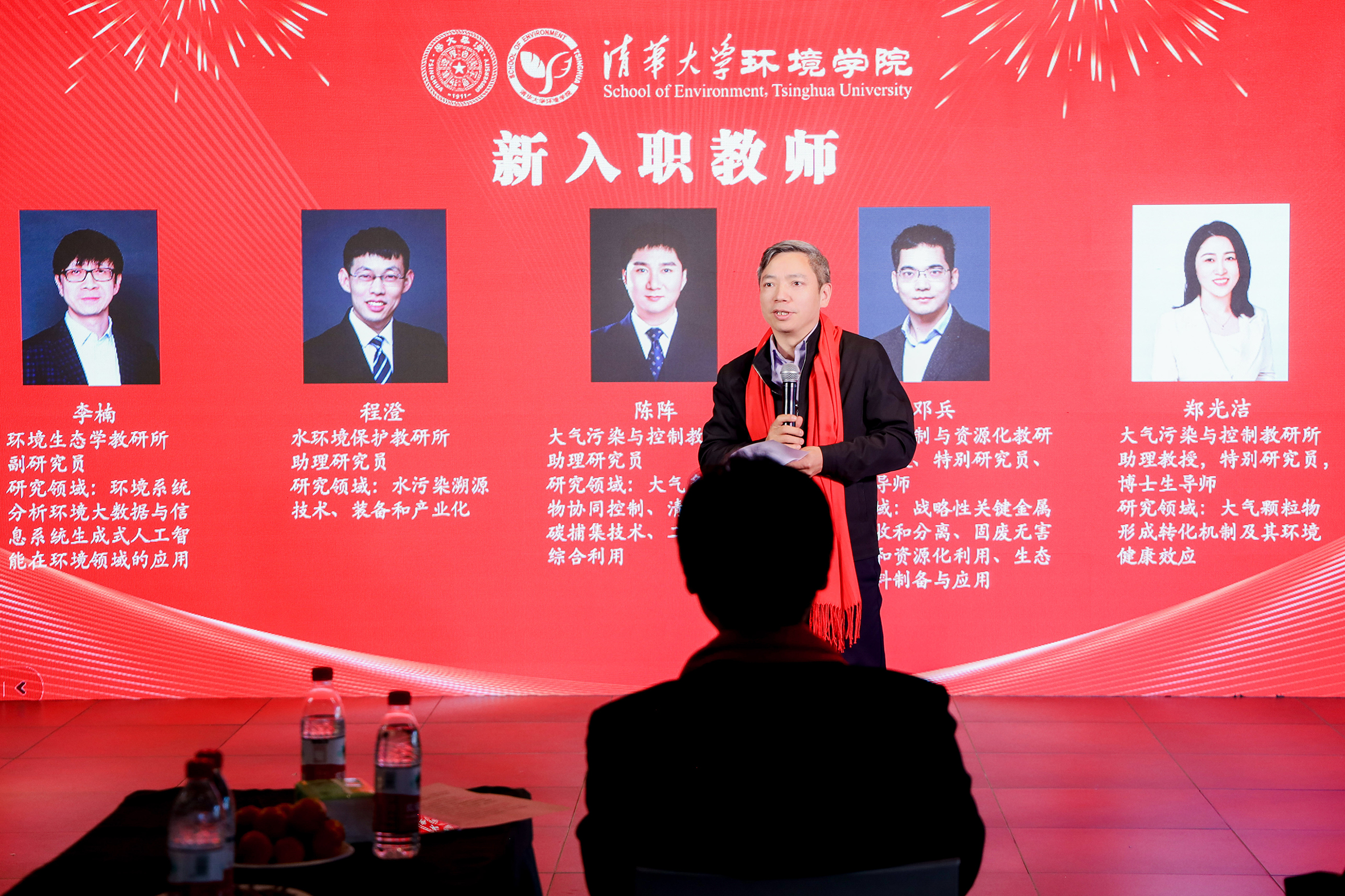党委书记王灿介绍了2023年加入环境学院大家庭的李楠、程澄、陈阵、郑光洁和邓兵等5位新入职青年教师。
