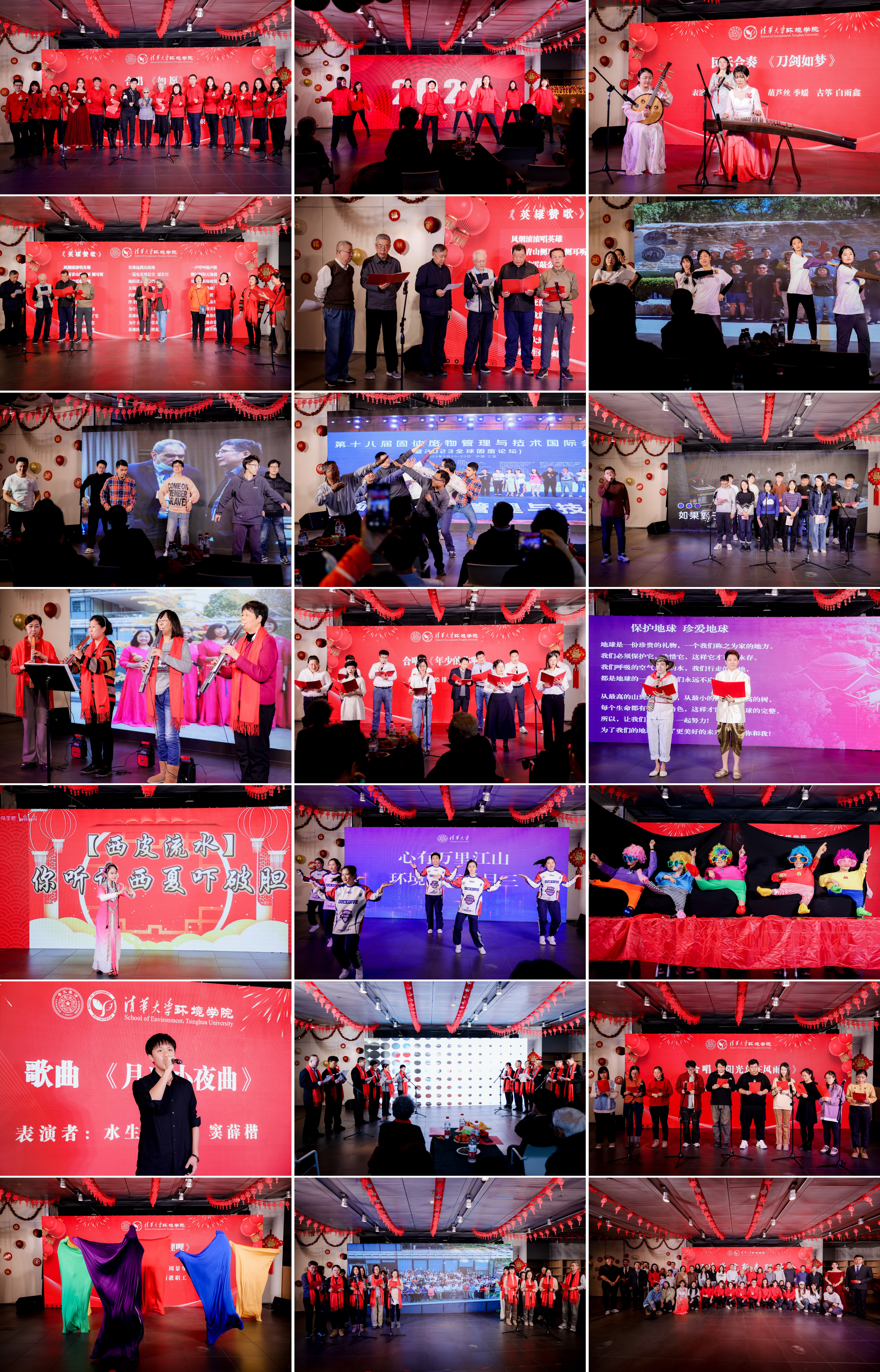 来自各教研所、离退休教职工、物业的15个节目用舞蹈、合唱、朗诵、乐器演奏等形式为大家带来了一场精彩的演出。教师们的积极参与为联欢会增添了欢乐和活力。联欢会其乐融融,既促进了学院教职工之间的交流,也增强了学院教职工的凝聚力。