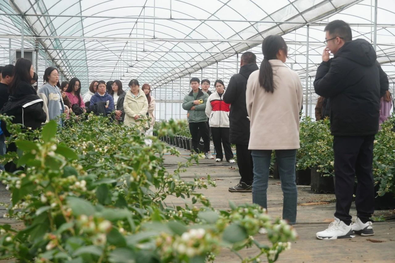 支队成员还参观了5G盆栽蓝莓种植基地一期项目,对现代科技与农业生产的深度融合有了更直观的认识,并从水利灌溉,生态发展的角度,对项目后续建设给出了思考和建议。