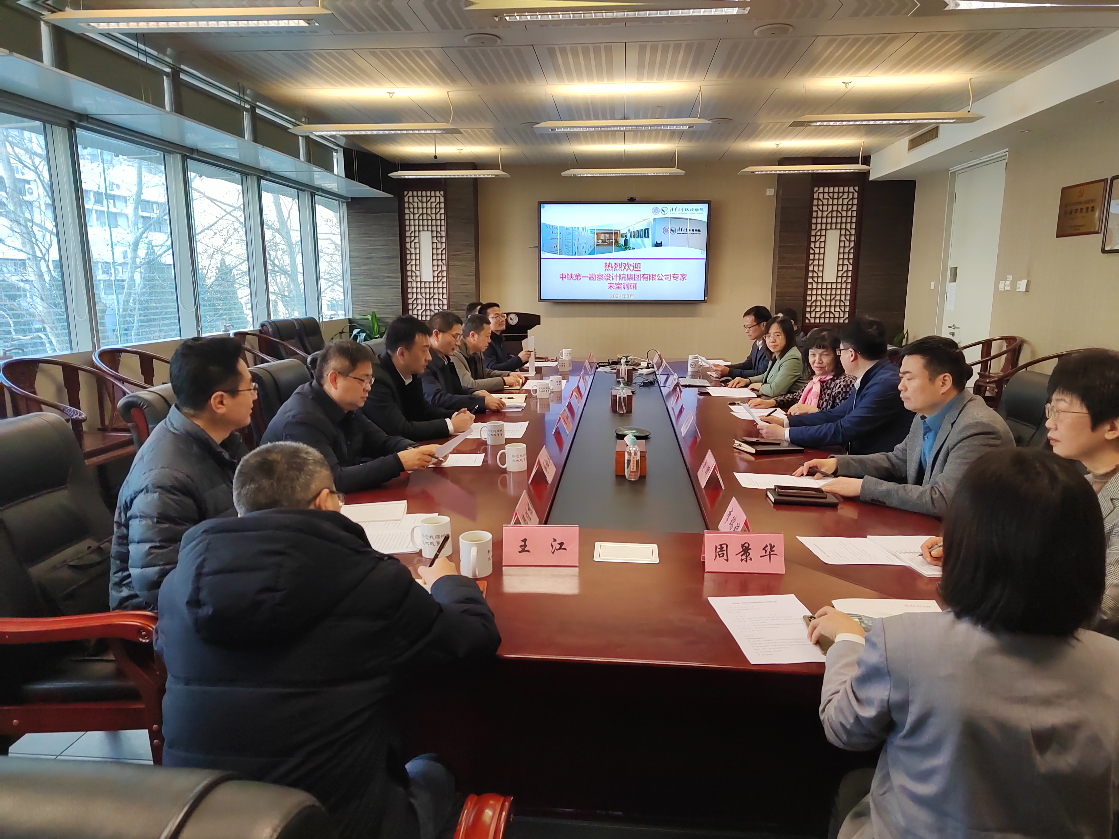 田士军介绍了来访的背景和调研内容,并对铁一院的基本情况、科技创新、科技投入与成果、“十四五”时期创新方向及与清华大学合作等方面进行介绍。他希望通过交流深入了解环境领域的科技创新方向和科技成果转化需求,寻求双方合作的可能性,推动企业转型升级。韩佳栋在基本情况、人才队伍、承担项目等方面对极端环境岩土与隧道工程智能建养全国重点实验室作了介绍。