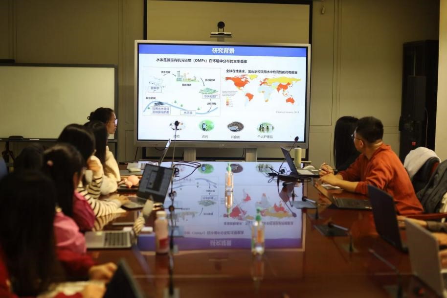 参与课题四研究工作的MK官网2020级博士生郭柯卉分享了药物类污染物在污水处理厂中迁移转化和风险评估的相关研究进展,通过对疫情爆发前后污水厂污水和污泥的采样分析,明晰了药物类污染物的赋存特征、去除机制、水固相分配规律、足迹解析和风险评估。基于现场调查结果和项目需求,郭柯卉分享了下阶段的研究计划。