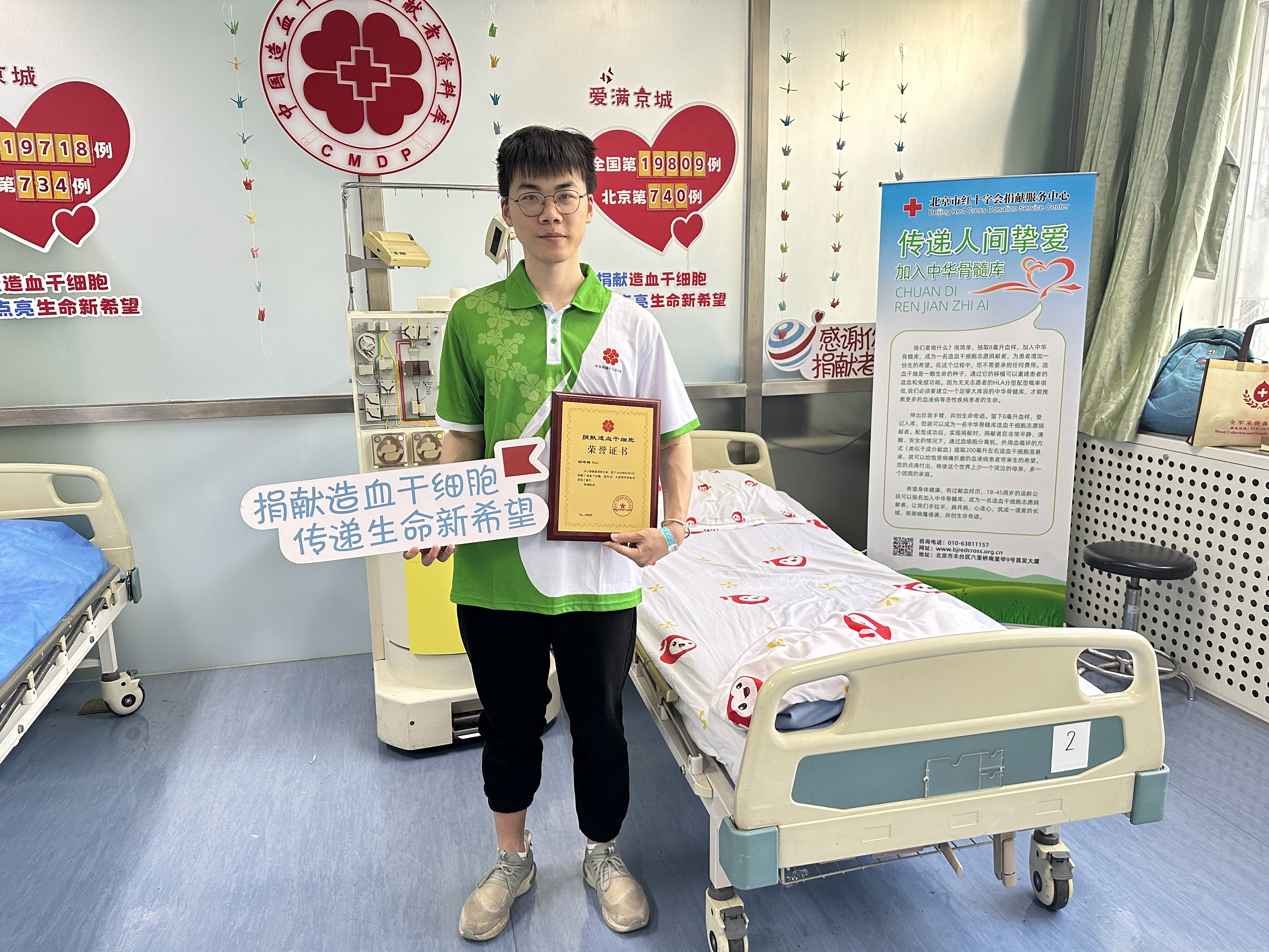 4月16日,MK官网2021级本科生胡坤鹏在中国人民解放军第五医学中心顺利完成造血干细胞捐献,成为清华大学在校第26例、北京市第740例、全国第19809例配型成功并完成造血干细胞捐献的志愿者。他用自己的青春热血守护了一位陌生人的生命希望,谱写了一曲生命接力的感人篇章。