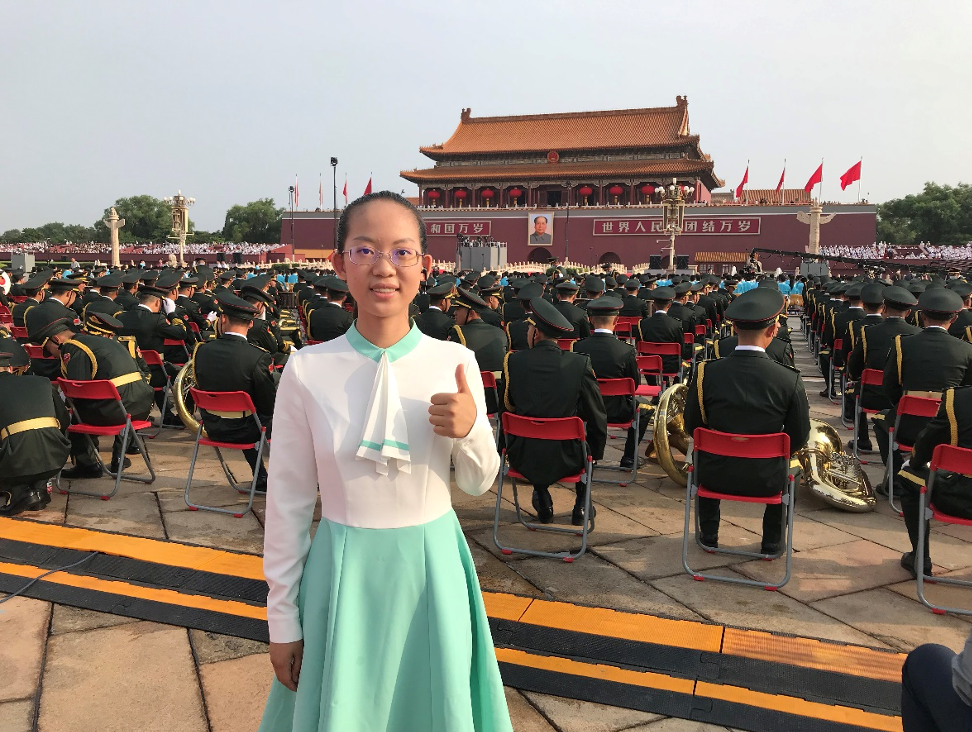 在庆祝中国共产党成立100周年大会上,我作为合唱团女中声部的一员,在天安门广场以歌声为伟大的党献上生日的祝福。非常荣幸地,这是我第二次参加千人合唱团。从四月初到七月,三个月以来,500余小时的校内外训练使我们业务水平飞速提升,将曲目和动作烂熟于心。在广场上,我们聆听了总书记的讲话,这充实、精炼、厚重、有力的讲话,更加深了我对中国共产党的敬仰和拥护,以及对中华民族光明未来的期待。