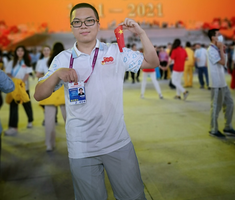 参与这次建党专项活动,感受到了党巨大的动员能力,为重大活动的开展动员各界力量,确保活动的顺利进行,而志愿者是活动中小小却重要的一环。在观看演出时,看到冉冉升起的党徽,我感到非常自豪和骄傲;作为新入党的党员,能有机会在志愿服务中实践为人民服务,为活动的安全和顺利开展贡献力量,也感到非常激动。百年接力,强国有我,希望能为祖国伟大复兴作出更多贡献。