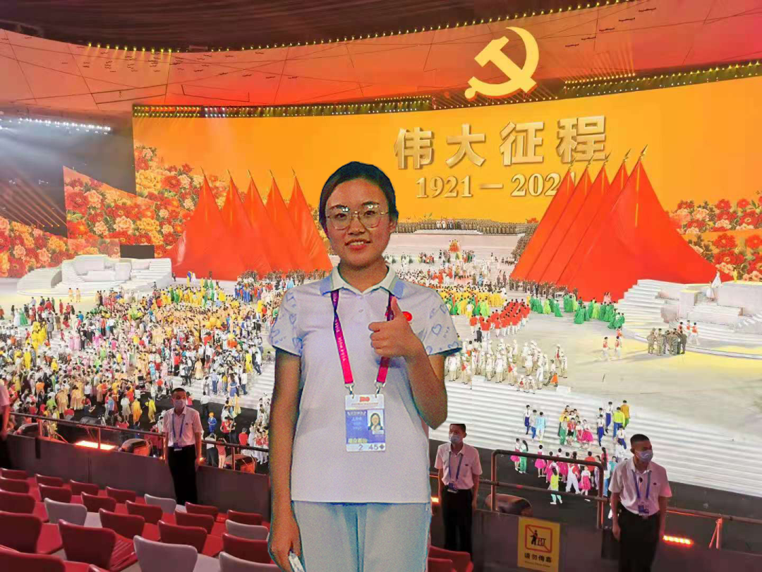 这次能参加专项活动是意外之喜,之前也没有想到能够参与到这样一场宏大而动人的文艺演出当中,整场演出回顾了党的发展历史和至今以来所有的重大事件,尽管在排练中看了很多次,但每一次都让人感到振奋和感动,感受到今日的繁荣昌盛来之不易。作为大学生合唱团几千人中的一员,我每一次的合唱、鼓掌和欢呼都用我最大的能量,我们所有人都希望为党的百年征程献礼,为党的百岁华诞献出最真诚的祝愿。我们在整场演出中可能并没有多少镜头,可能不会看到我们具体每个人的面孔,但是演出中总有我们的身影。现在演出虽然结束了,但是其中的片段和歌曲还是常常回放在脑海中,时刻提醒着我不忘历史,不忘先辈,不忘党的苦难辉煌,作为党员,今后也要像千千万万的党员一样,不论是杰出还是平凡,都要为祖国和人民贡献自己的力量。
