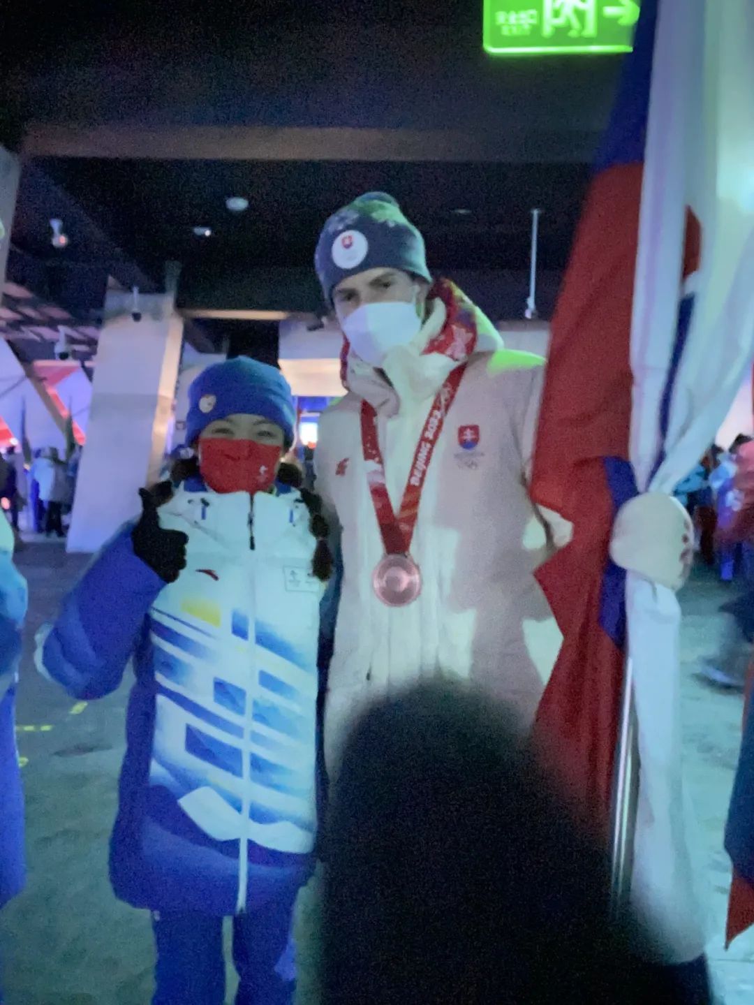 武若曦:我觉得能参与到冬奥会中是非常荣幸和有意义的。我负责的是闭幕式标兵。为了这次冬奥志愿服务,主要是在时间管理方面,要提升工作效率,平衡训练和其他工作,还要协调好寒假和后续隔离的时间等。这是我第一次在学校过年,除夕当天所有志愿者在C楼一起度过了一个虽然没有家人陪伴,但依然很热闹很温暖的春节。在做志愿者的过程中很辛苦,有些枯燥,还占用了我很多时间和精力,但是给了我一个认识很多好朋友的机会。