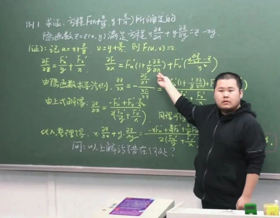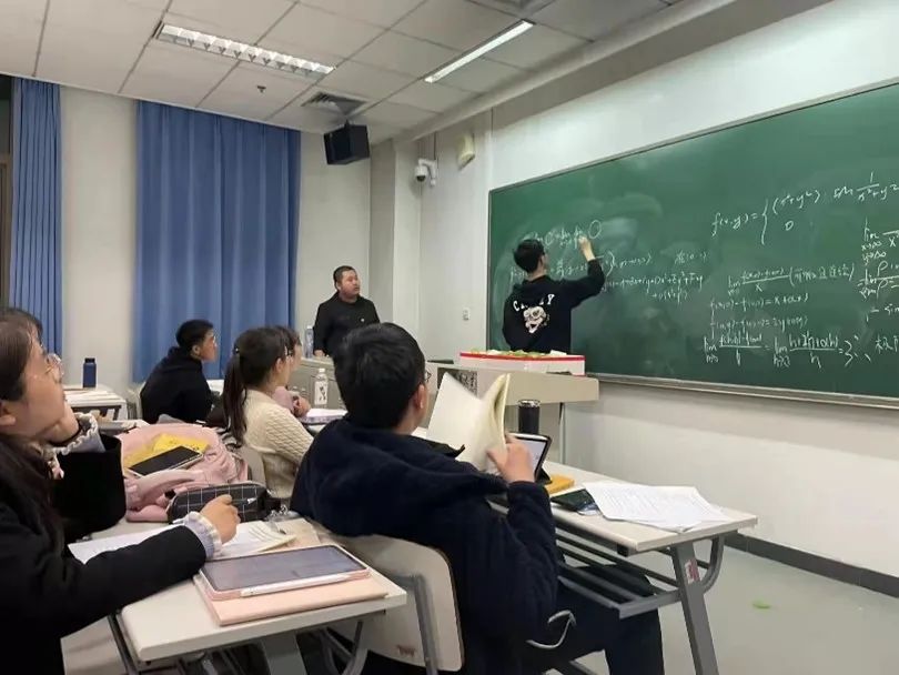 除了“备教材”“备教法”,邵瑞朋认为“备学生”尤为重要。在习题课之前,通过批改作业和答疑,他对同学们有了基本的“人物画像”。有同学对邵瑞朋的习题研讨课的评价是“节奏快,但是快得可以跟上”。通过经常向学生发问,他在自己的小班营造了一种沉浸式的学习氛围。他还会经常喊同学上黑板做题,“在同学们看来是随机选人,其实不是,我在上课之前就会设计好要找的同学,因为他的作业做错了,或者我知道他在这一块比较薄弱。”“不让学生挂在黑板上”是邵瑞朋的原则,“让最适合的同学去回答相应的问题”是他的目标,同时他认为被提问的同学可以稍微犯点错,这样不打击自信,又能有所收获。