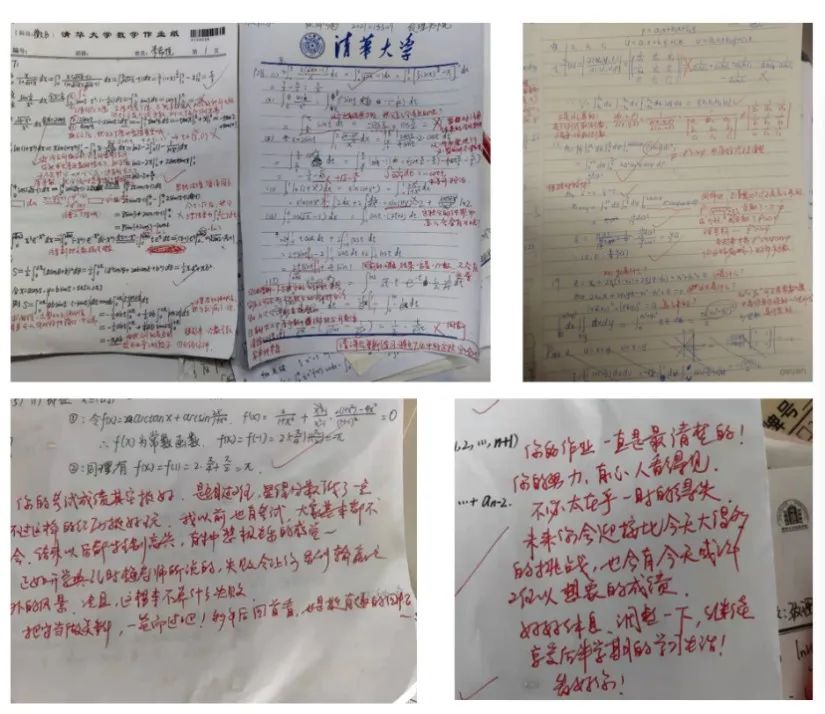 邵瑞朋嘱咐助教团队的伙伴们说,如果有同学来找我们答疑,我们要“知无不言”。即使是微积分学习之外的问题,譬如很多同学有专业选择上的困惑,助教虽决定不了同学的个人选择,但会尽可能提供信息或获取信息的渠道。每次作业批改,邵瑞朋都会密密麻麻地写上很多批注,让学生感受到被重视,“拿作业纸的时候心情就像是开盲盒一样,特别受鼓舞”。上学期的期末考试前夕,邵瑞朋主动约有疑问的同学们答疑,“问题特别多,我们在邺架轩答疑到了深夜两点。”