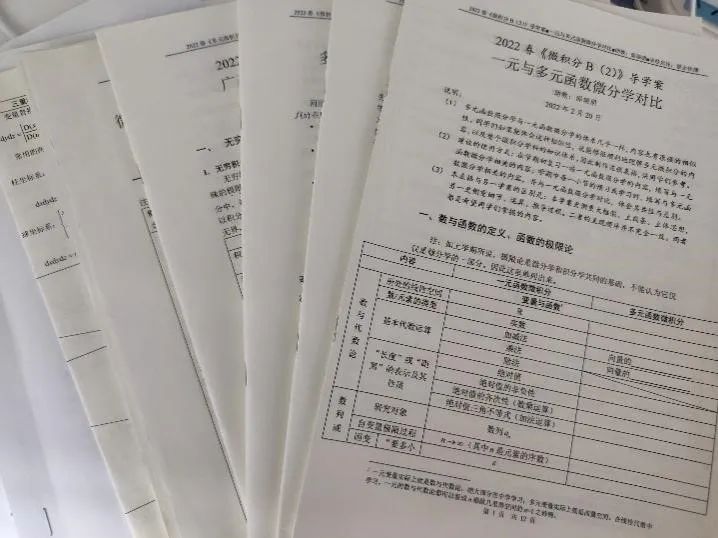 每次习题研讨课之前,邵瑞朋总会将导学案发给同学们,帮助大家透过具体琐碎的问题看到事物本质。“我们第一学期学一元函数,第二学期学多元函数,在知识体系上很有共性,但是多元函数需要线性代数的知识。同学们一开始可能会觉得微积分和线性代数是截然不同的两门课。为了让大家认识到两者之间的关联性,我在教案里专门把一元函数和多元函数进行对比。”